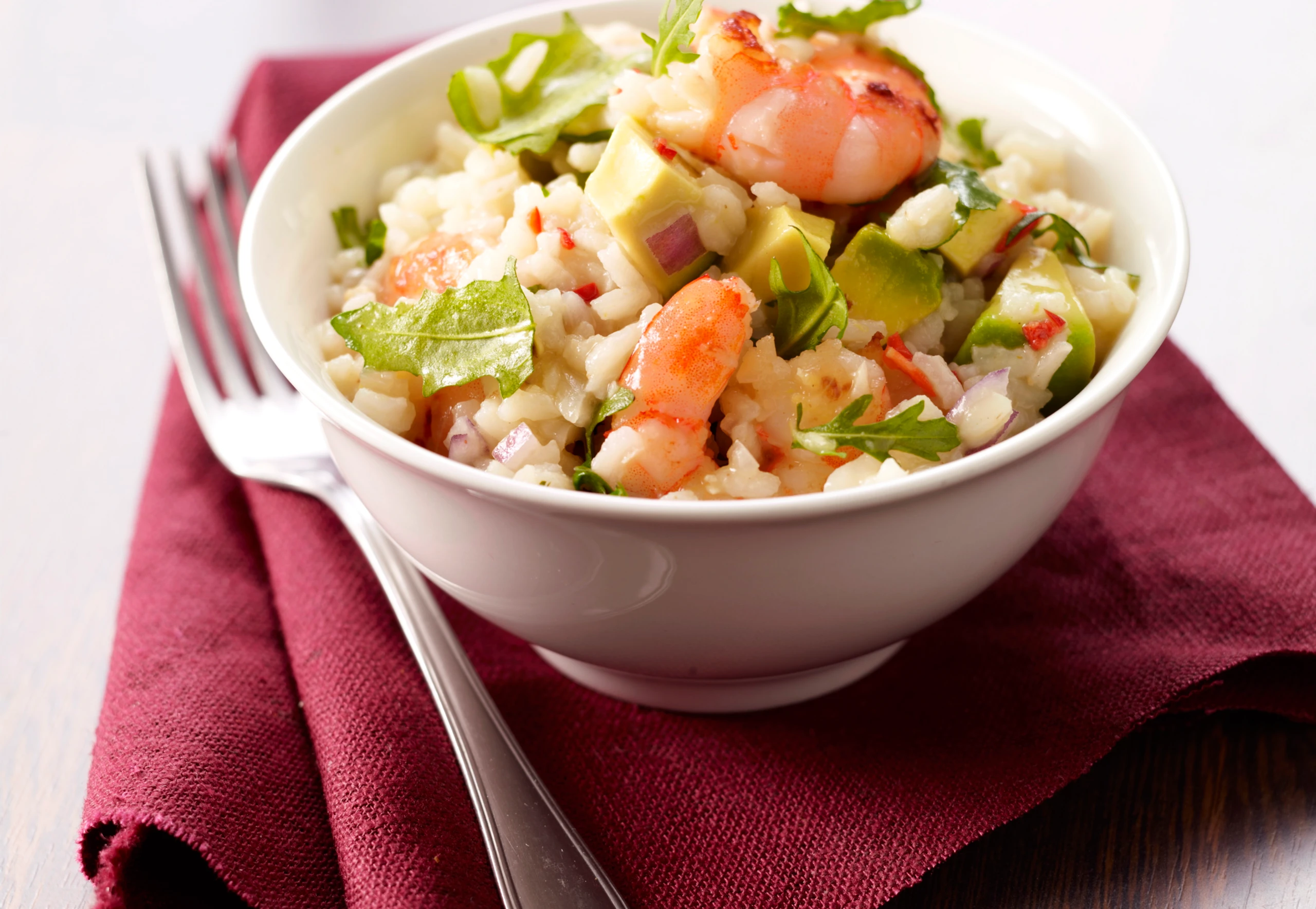 Risotto mit Garnelen, Avocado und Rucola