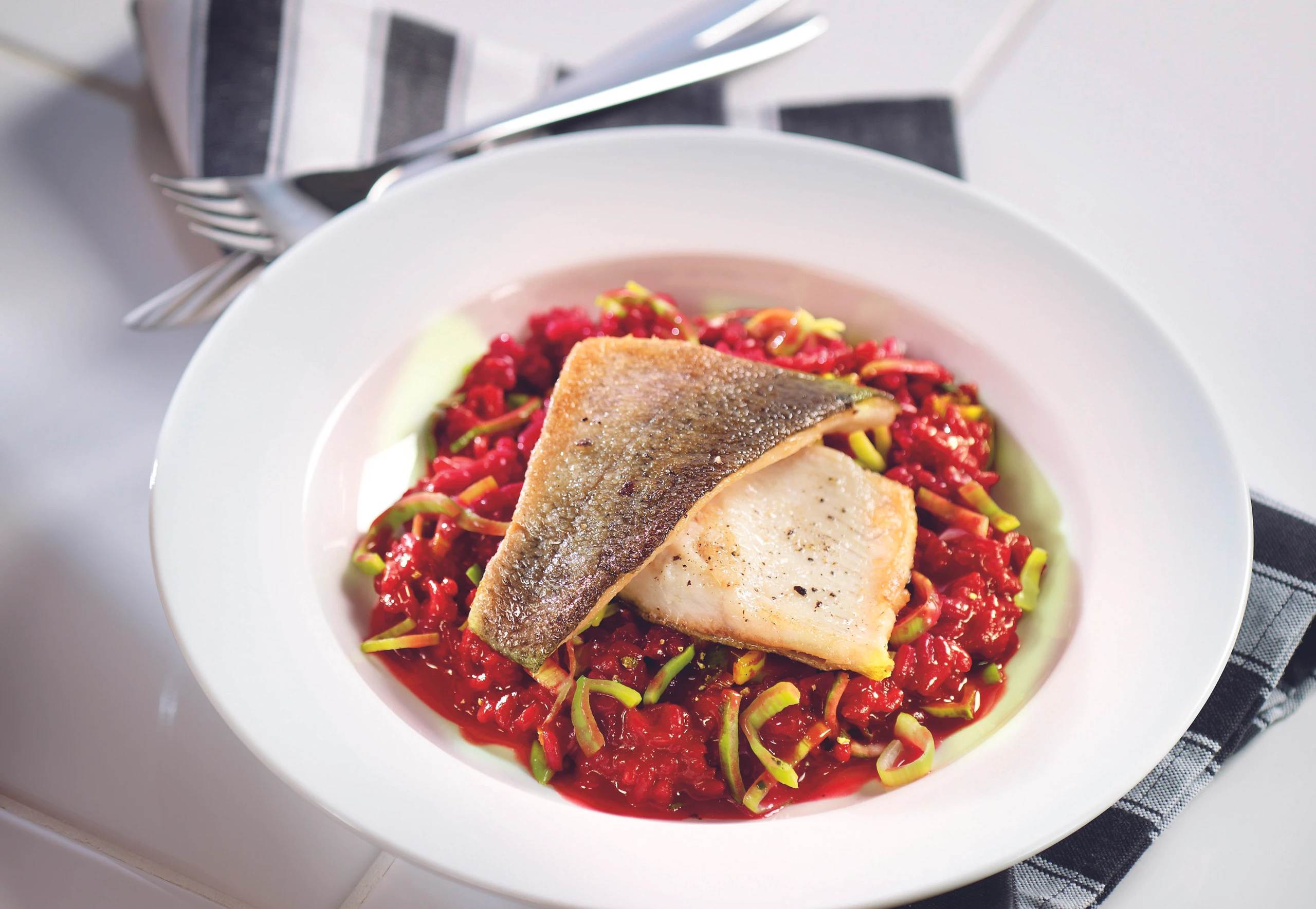 Risotto mit Roten Rüben und gebratenen Forellenfilets