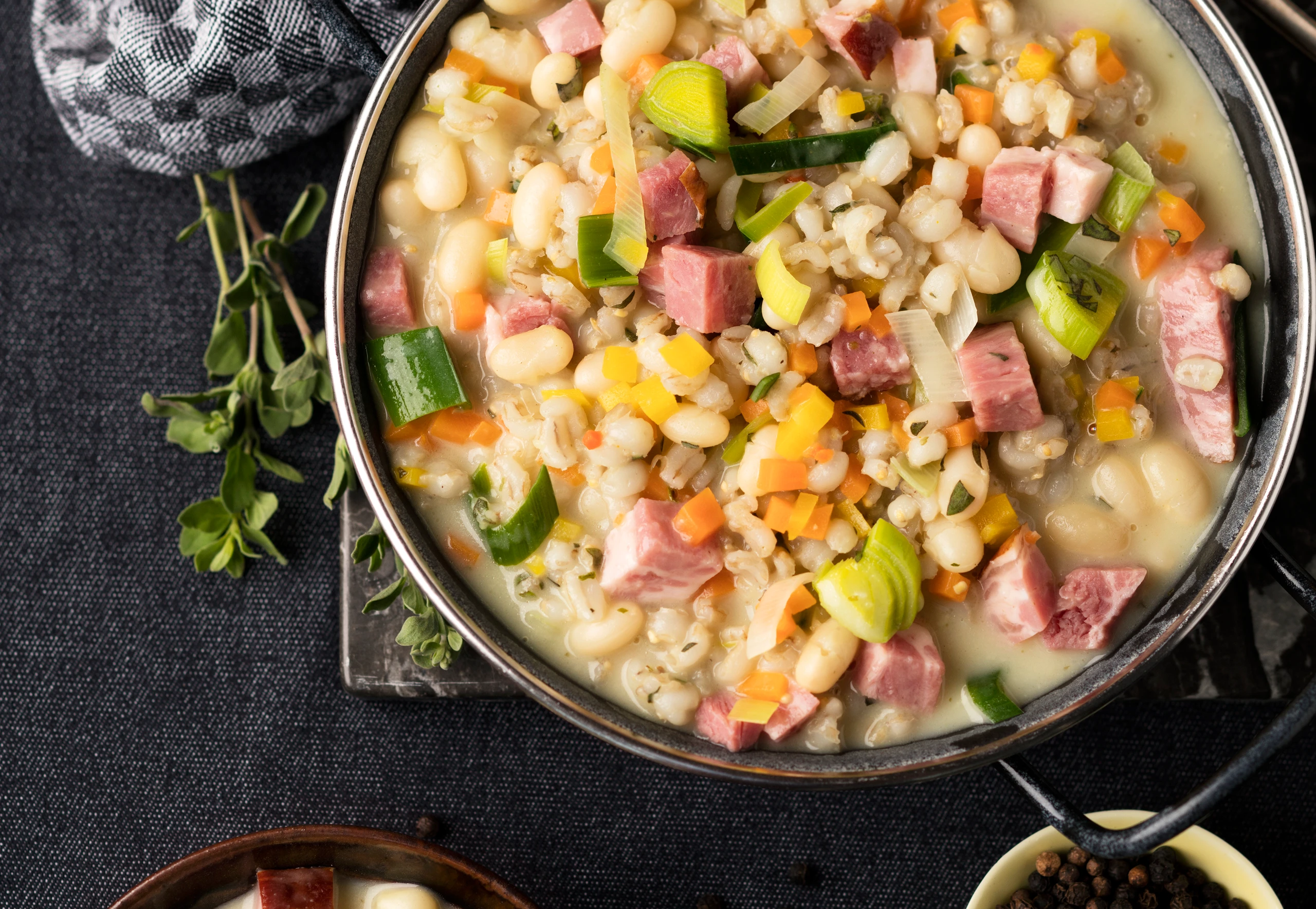 Ritschert mit Rollgerste, Bohnen und Selchfleisch