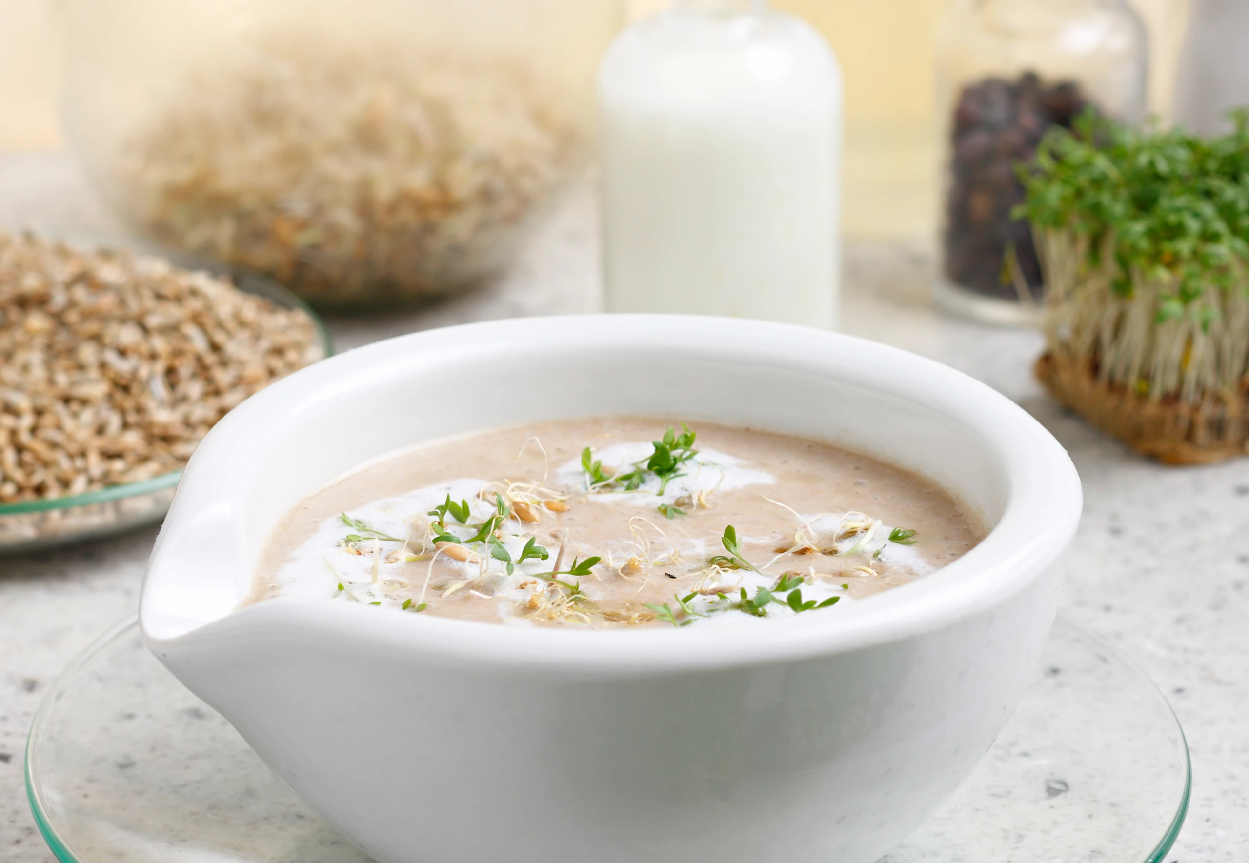 Roggenbrotsuppe mit Keimen und Buttermilch