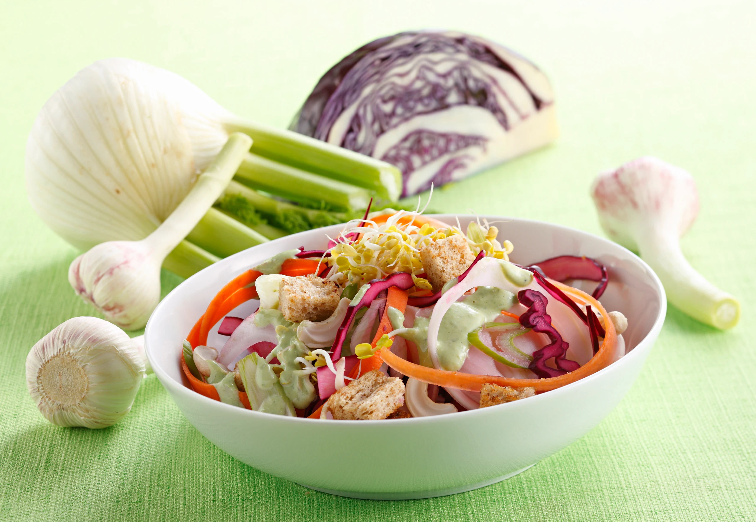 Rohkost-Salat mit Kräuter-Tofu-Dressing