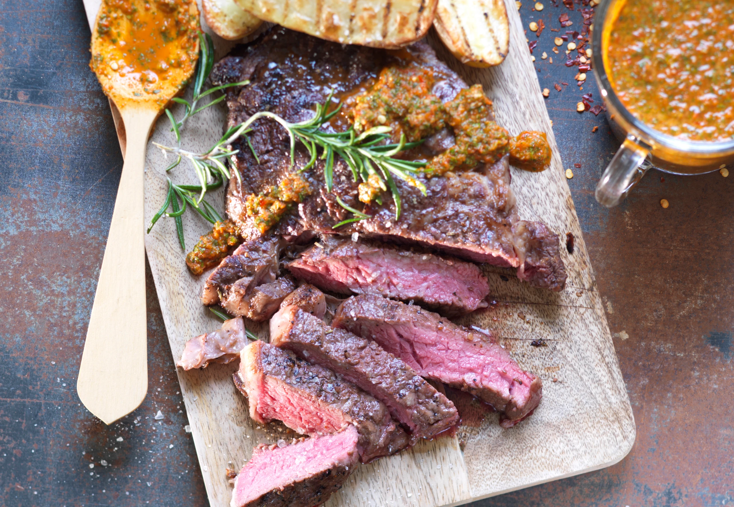 Gusto-Tipp: Chimichurri ist eine argentinische Sauce, die traditionell zu gegrilltem Rindfleisch serviert wird. Klassisch besteht die Sauce vor allem aus Kräutern und hat eine saftig grüne Farbe. Wir haben eine Version mit Paprika, Chili und Rotweinessig kreiert, die durch diese Zutaten eine rote Nuance erhält.