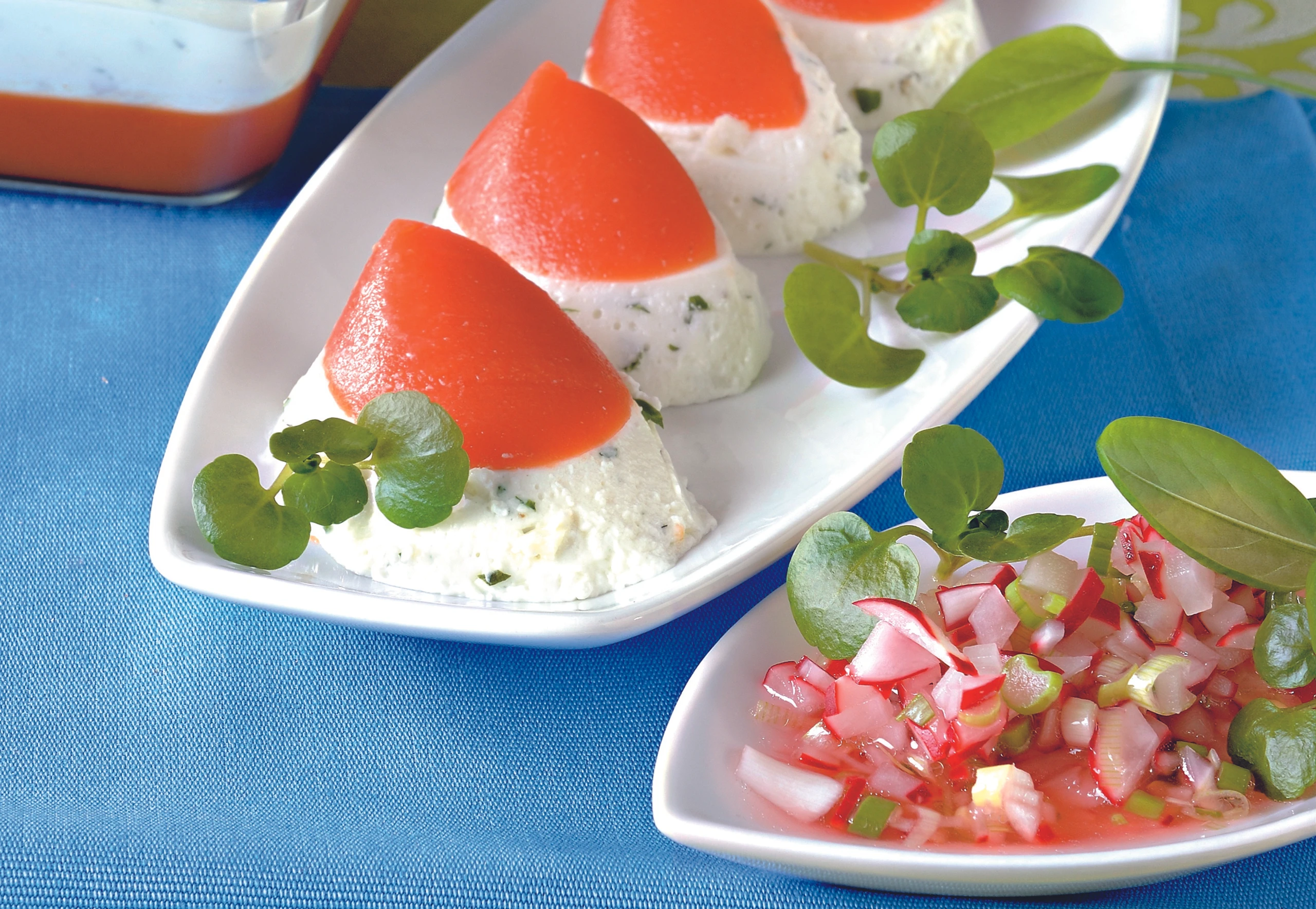 Rot-weiße Kräuter-Schafkäse-Joghurt-Mousse