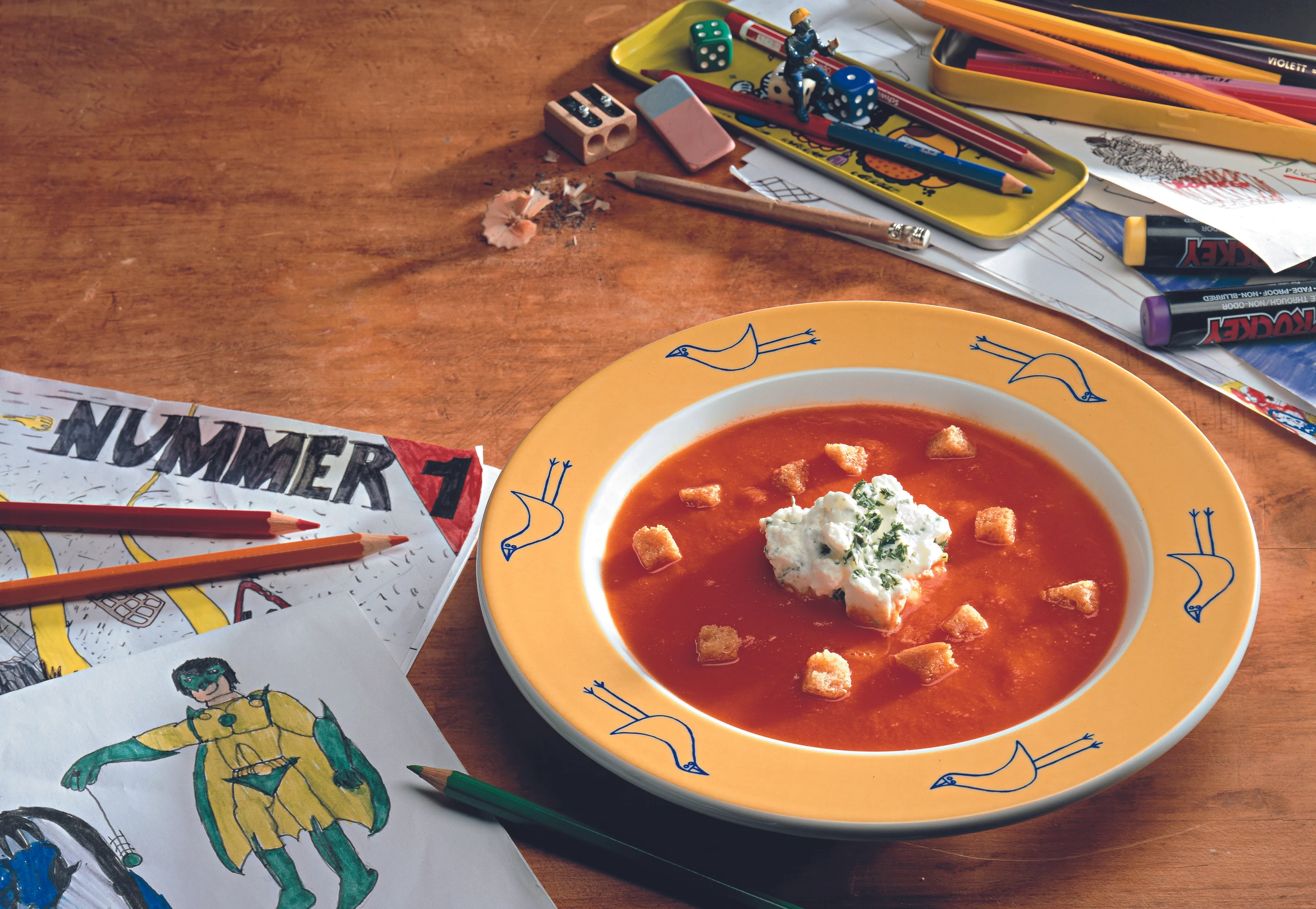 Rote Gemüsesuppe mit Obershäubchen