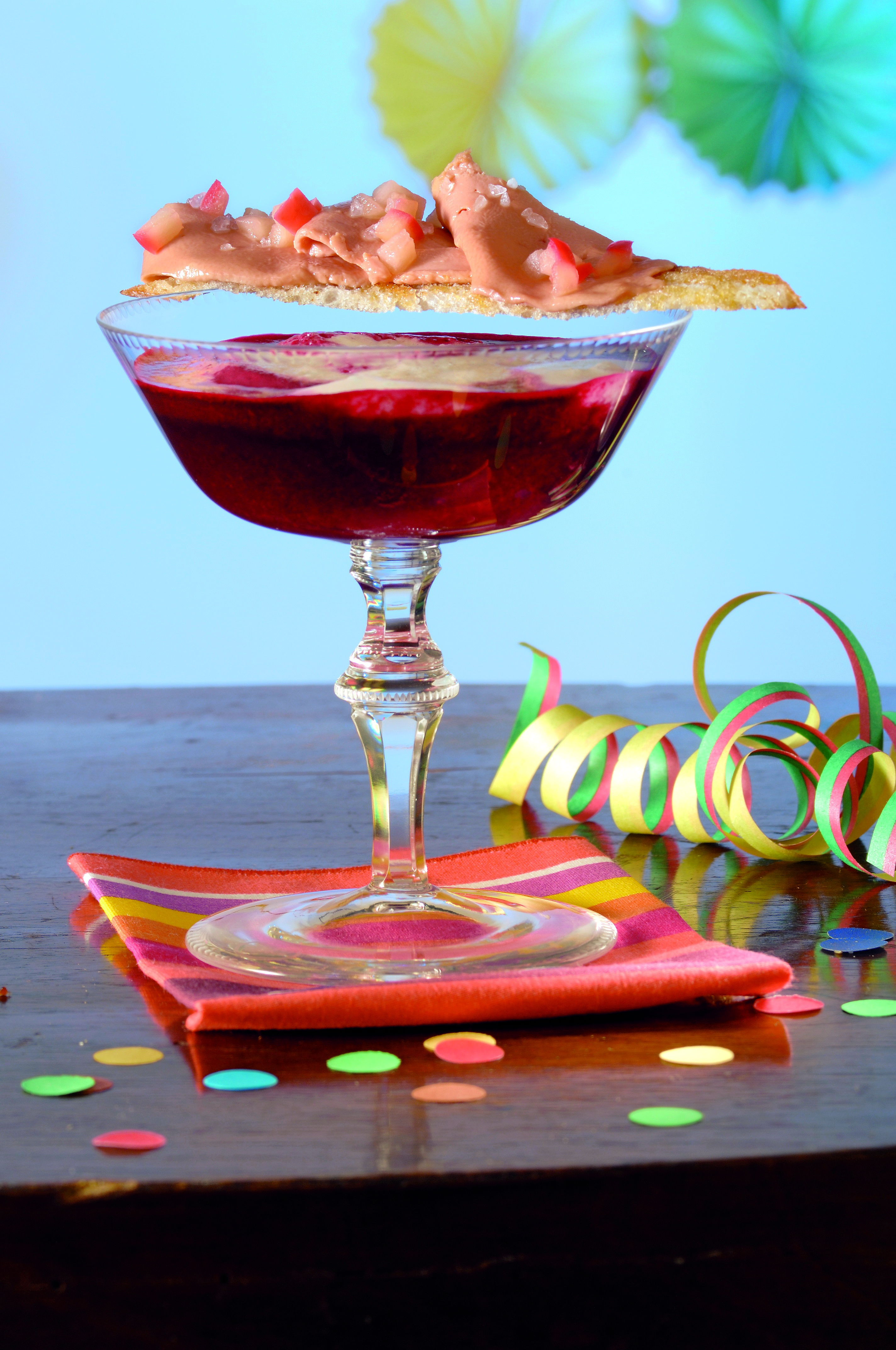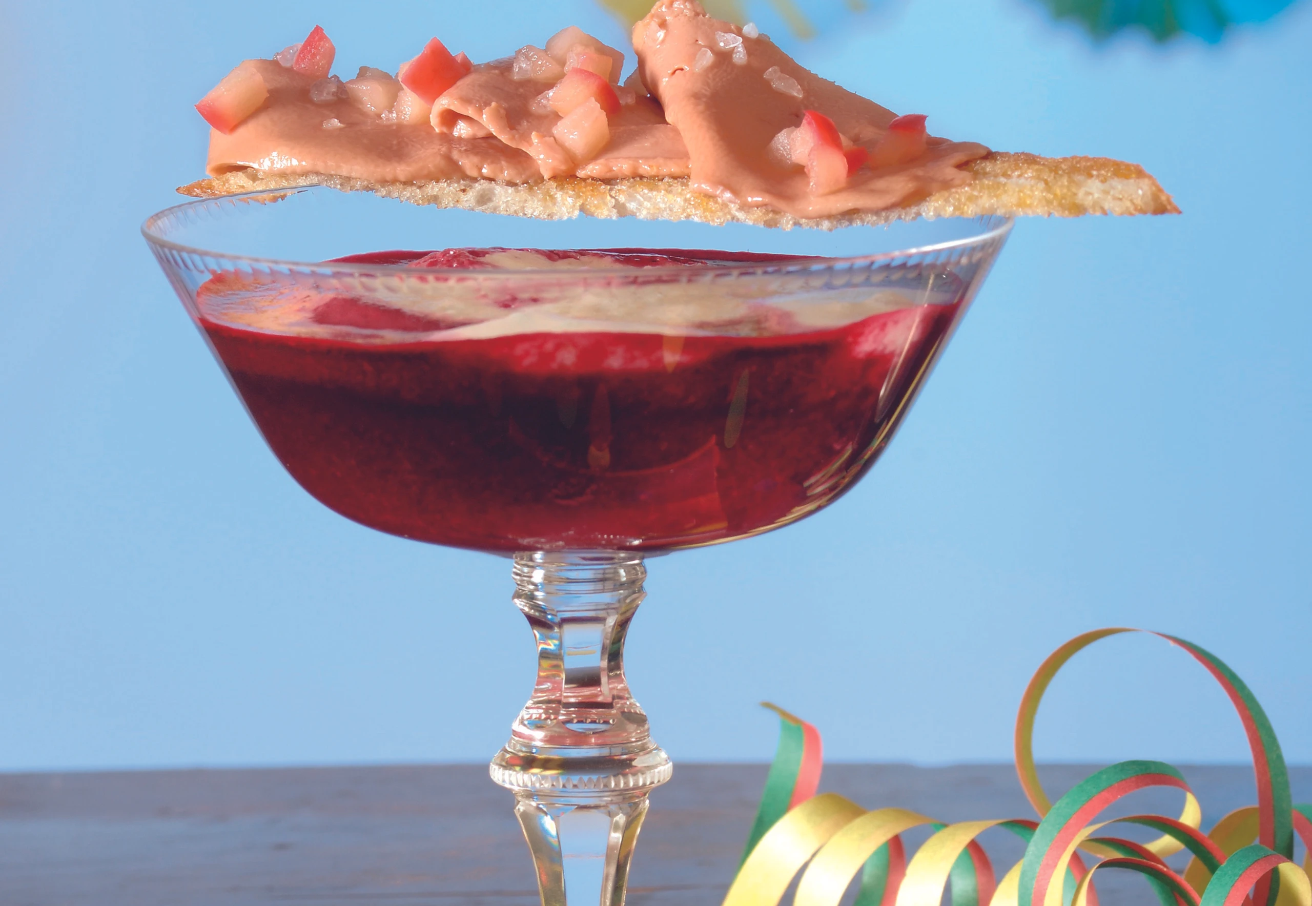 Rote-Rüben-Apfel-Drink und Gänseleber-Krusteln