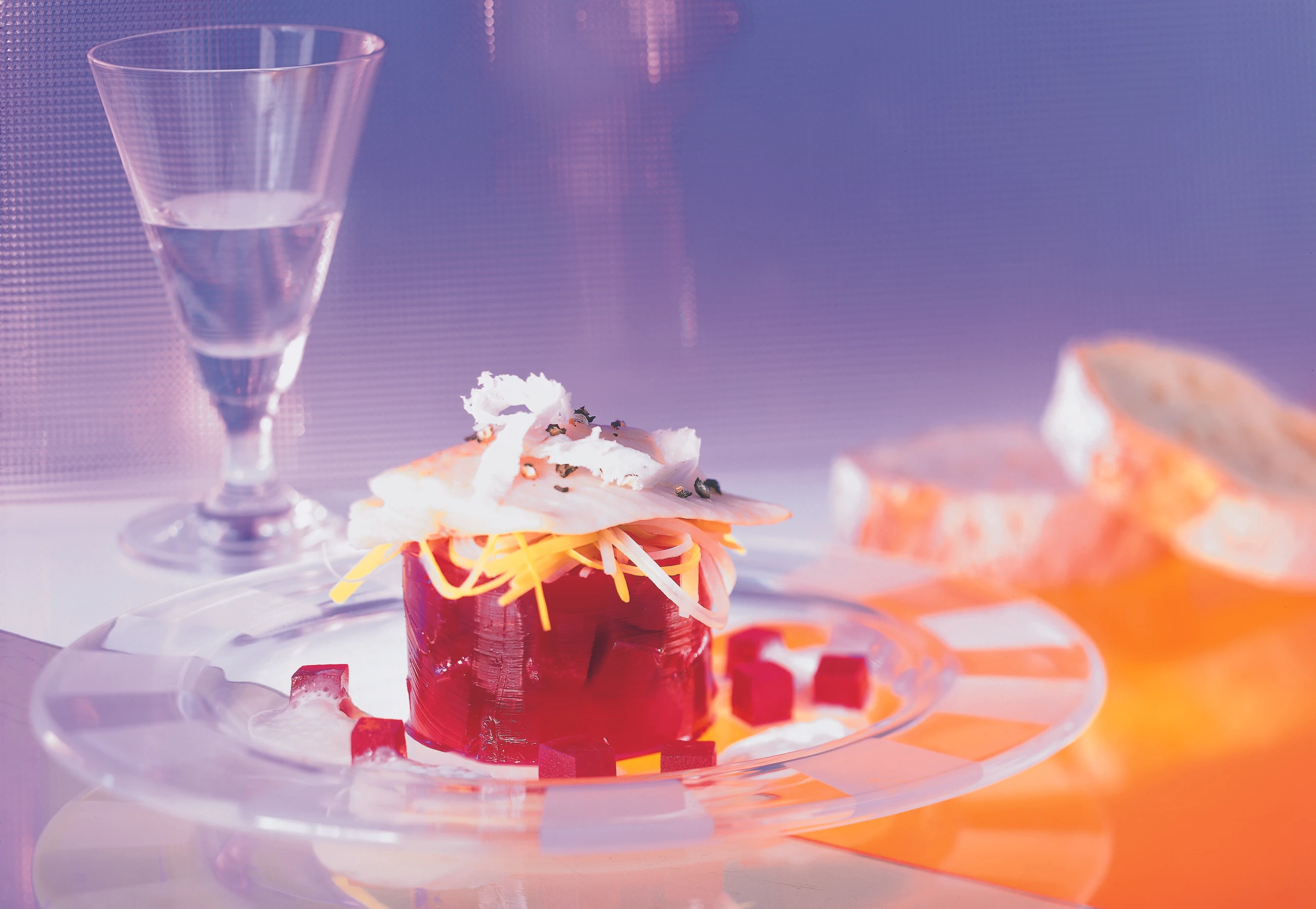 Rote Rüben in Gelee mit Forelle und Krenschaum