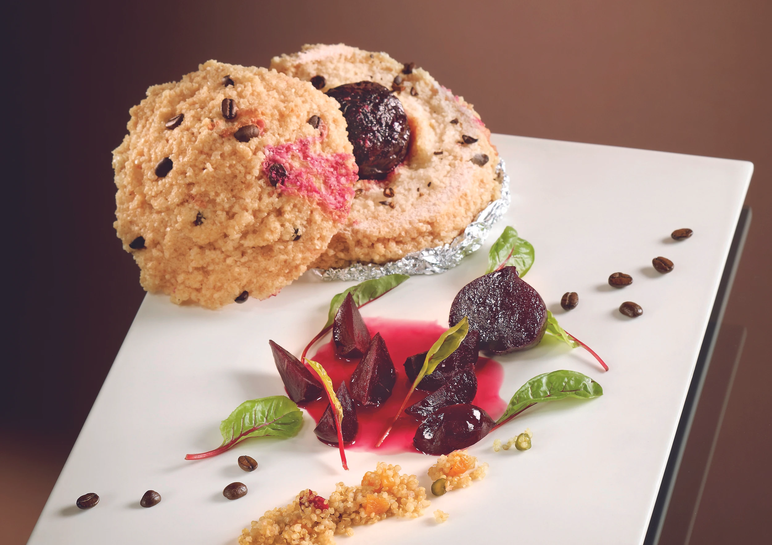 Rote Rüben in Kaffee-Salzkruste mit Früchte-Quinoa