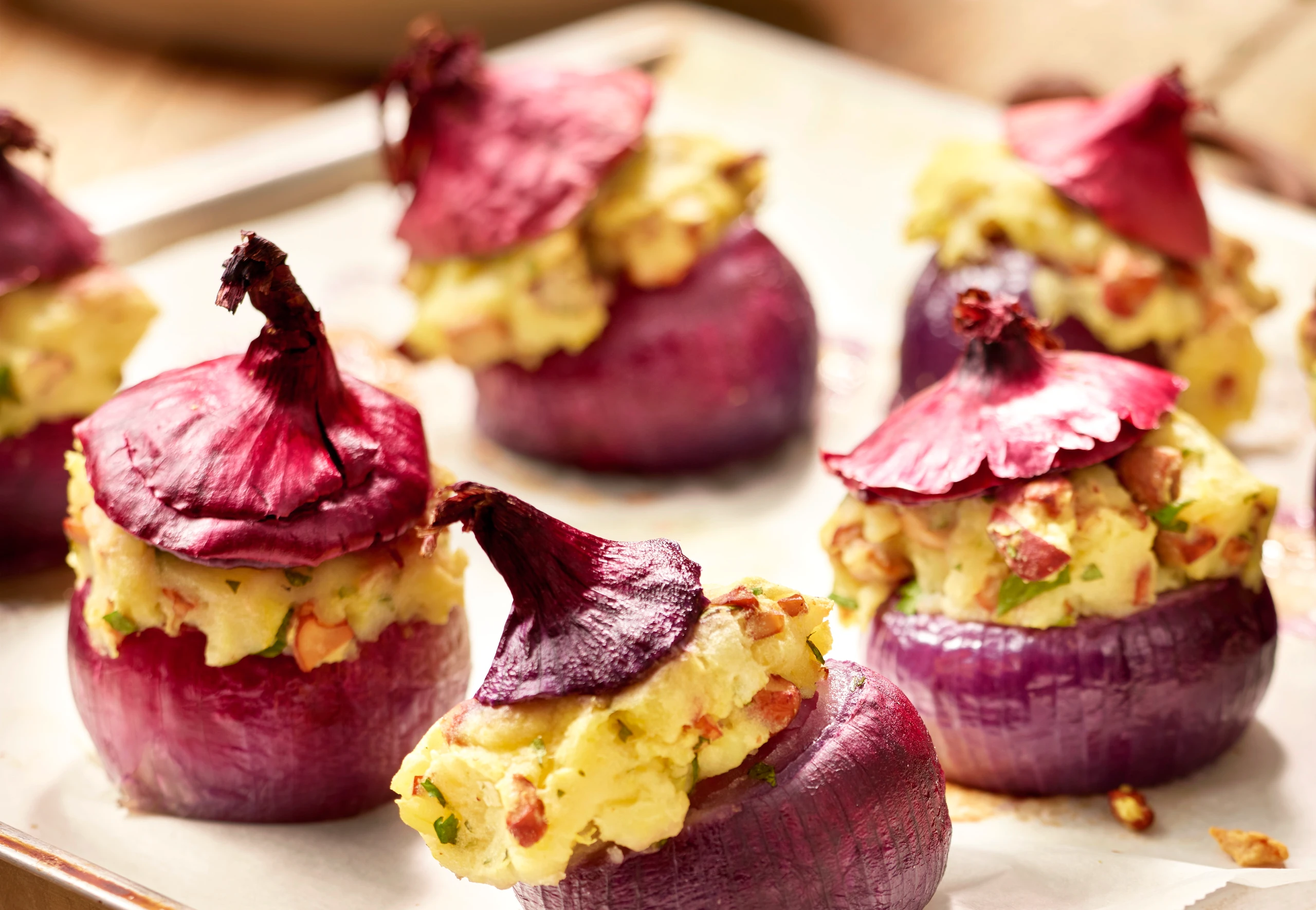 Rote Zwiebeln mit Erdäpfel-Schwammerlfülle