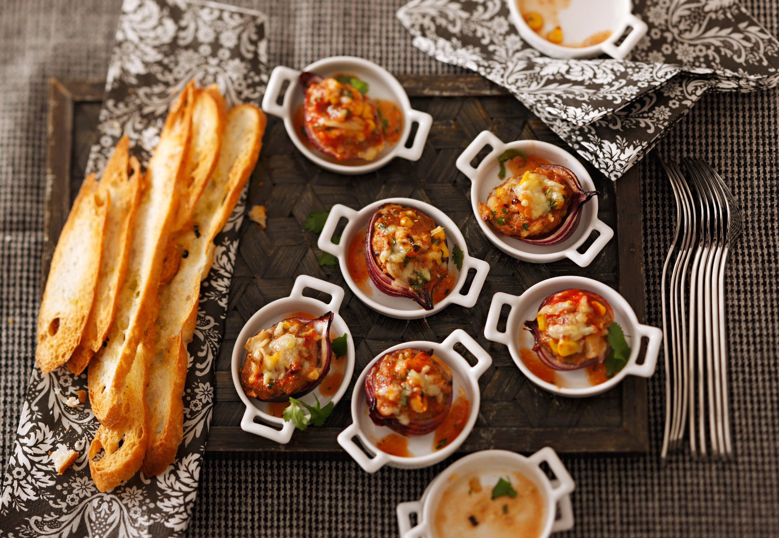 Zwiebeln mit der Masse füllen, mit Bergkäse bestreuen, mit übrigem Öl beträufeln und im Rohr (mittlere Schiene / Gitterrost) ca. 20 Minuten backen. Mit getoastetem Weißbrot servieren.