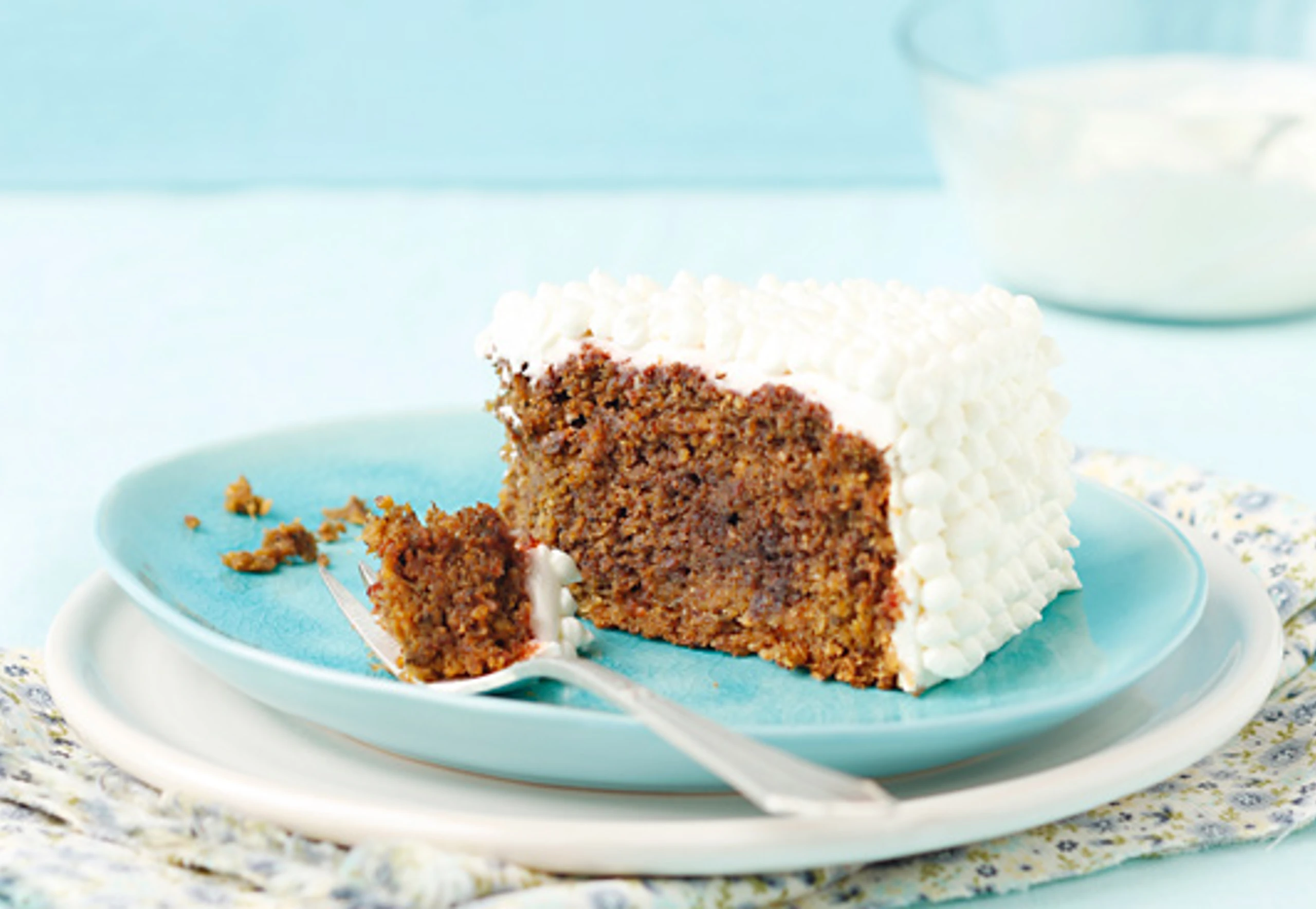 - Teig in die Form füllen, glatt streichen und im Rohr (mittlere Schiene / Gitterrost) goldbraun backen (ca. 50 Minuten).