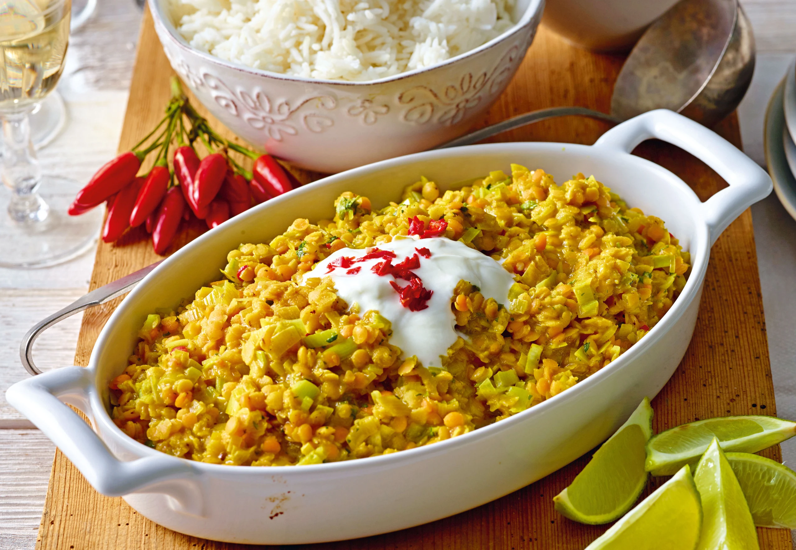 Rotes Linsen-Dal mit Joghurt und Basmatireis