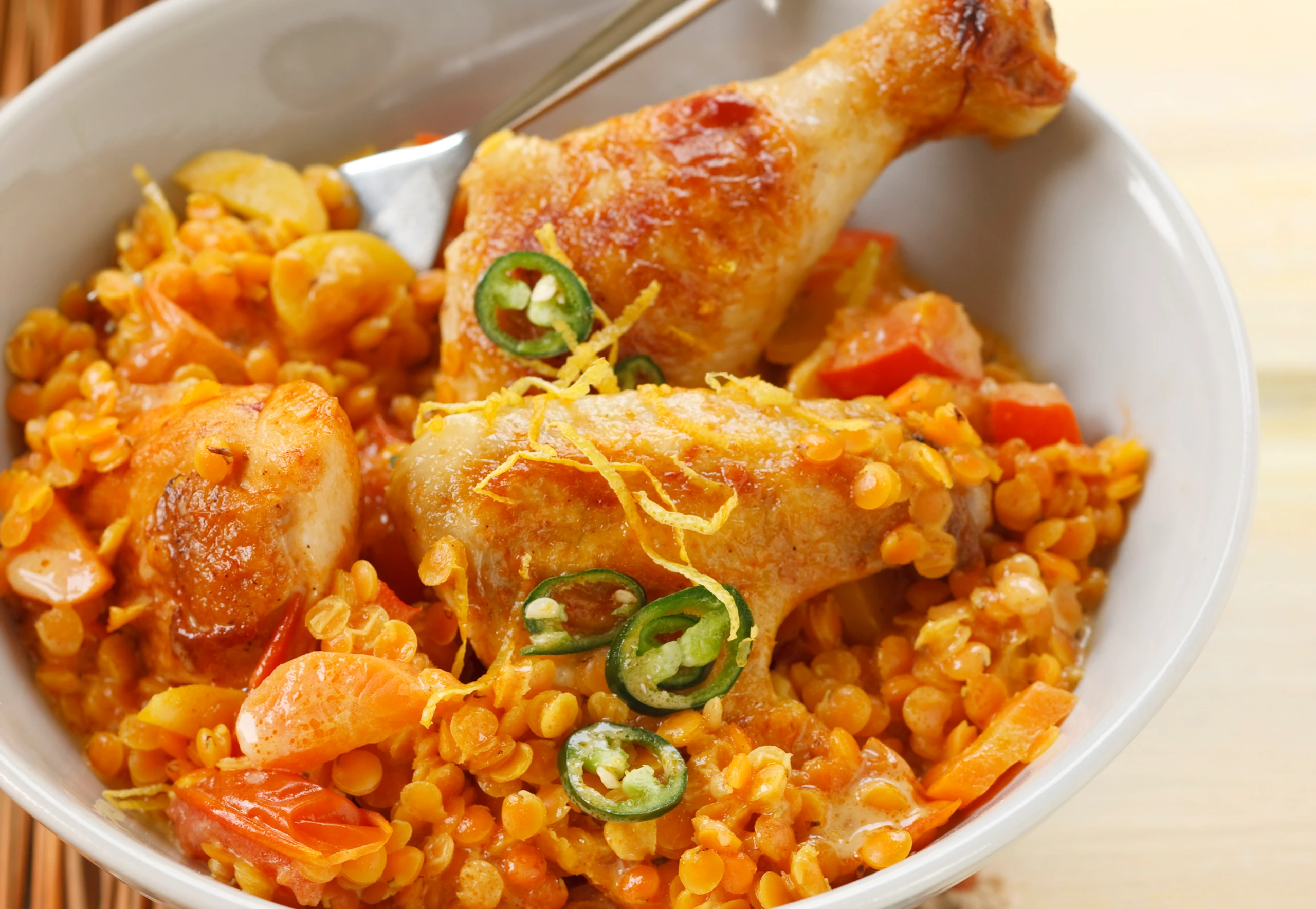 Rotes Linsencurry mit Huhn, Kokos und Chili