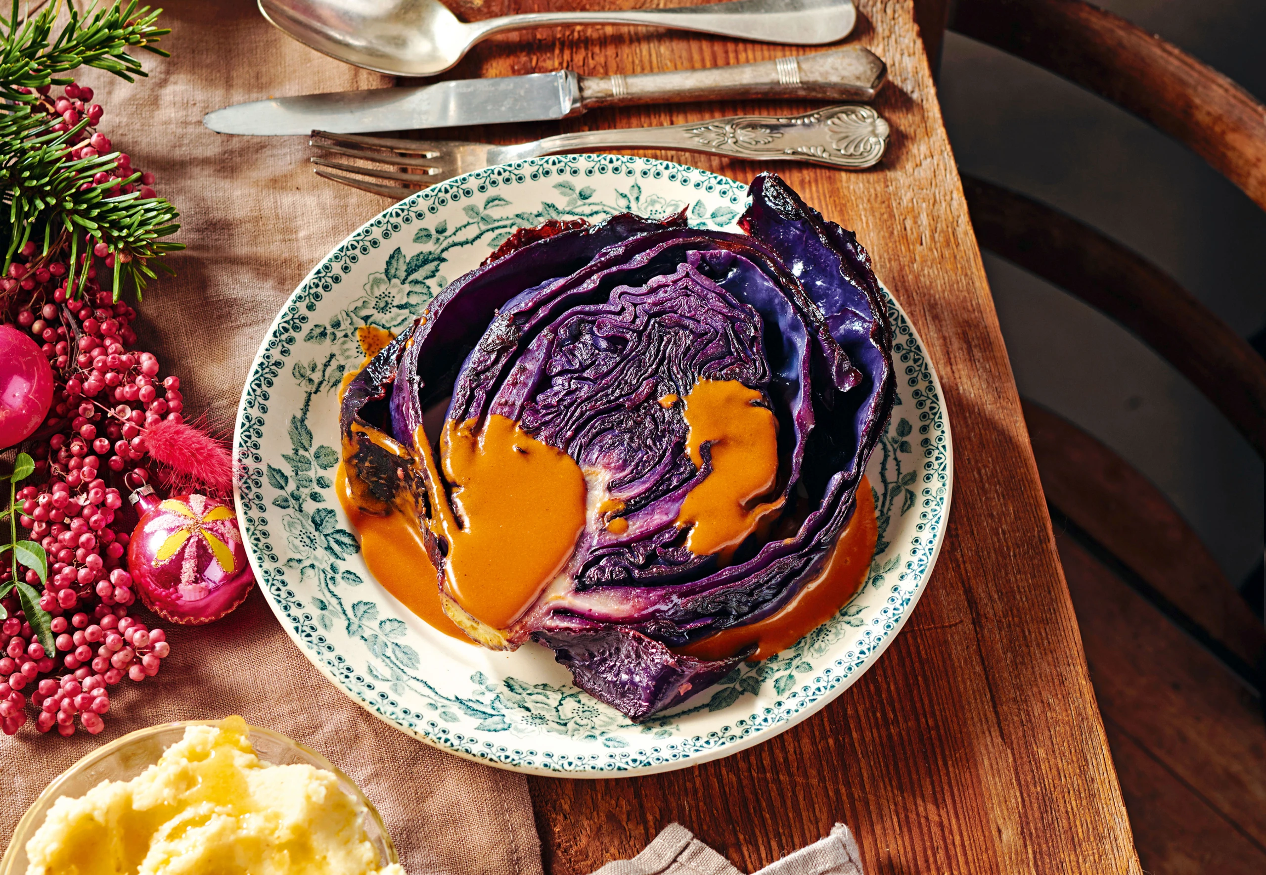 Rotkraut-Steaks mit Erdäpfelpüree & Bratensauce