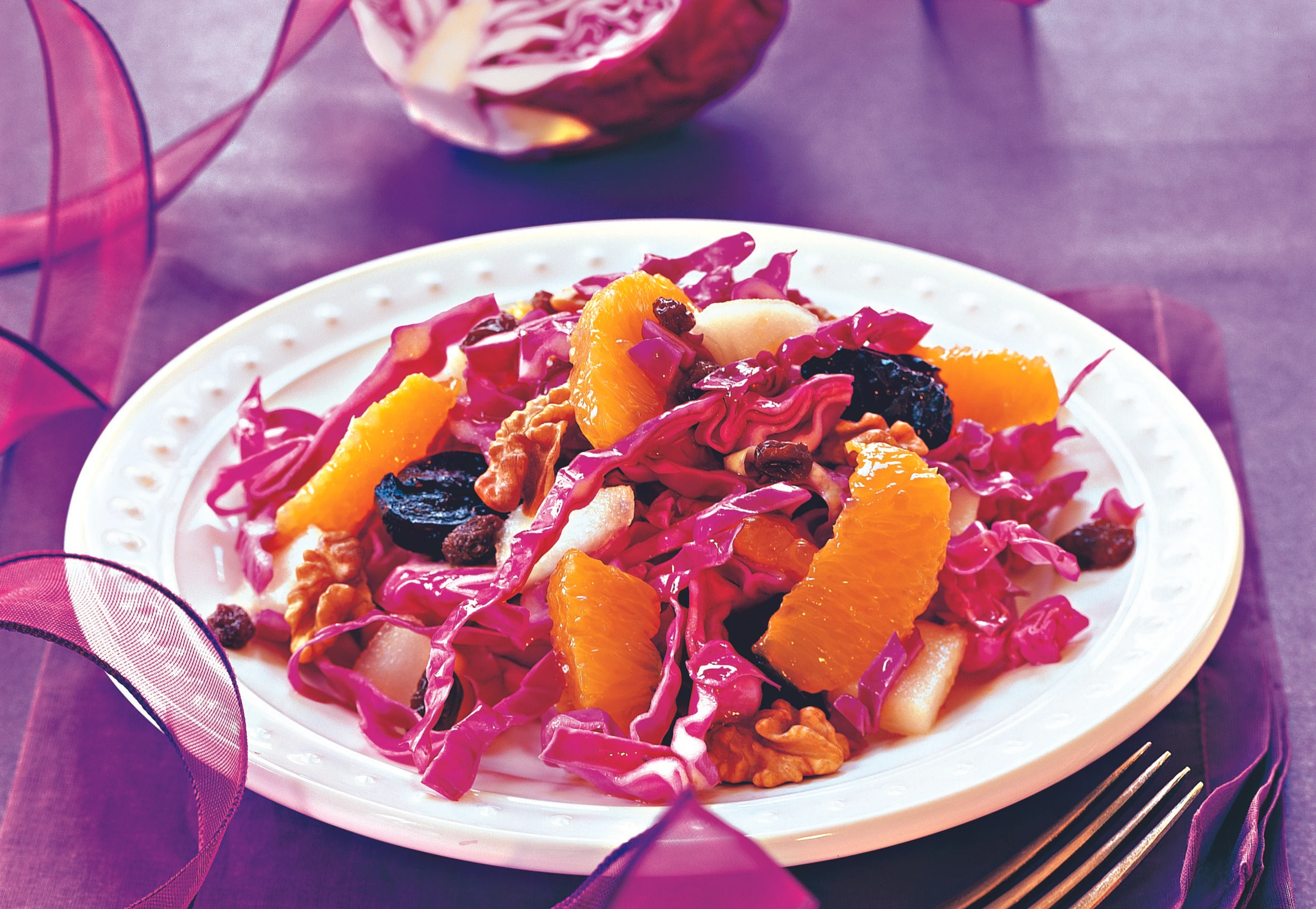Kraut abtropfen lassen und mit den Früchten mischen.