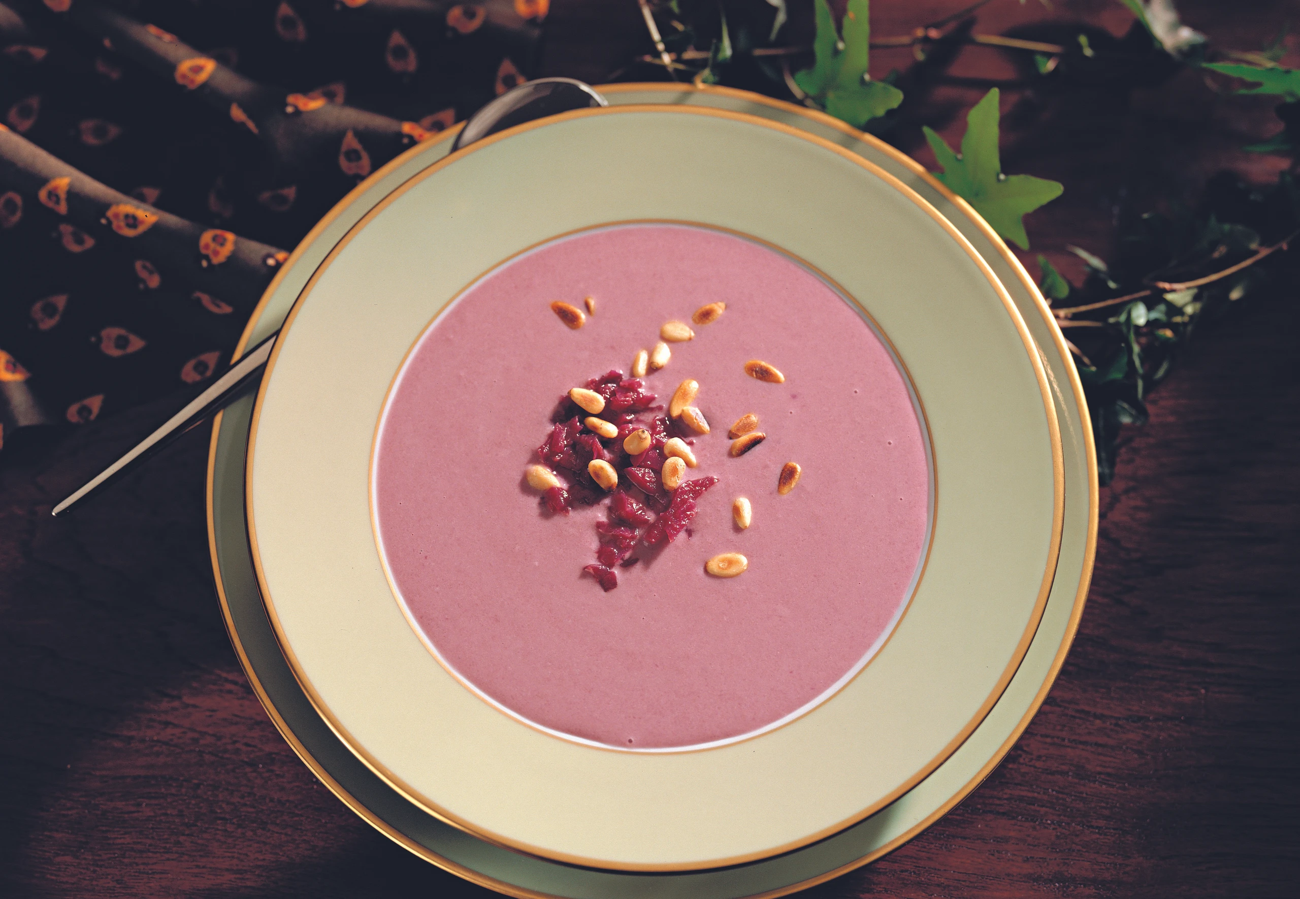 Pinienkerne in einer Pfanne ohne Fett knusprig rösten. Suppe in Teller schöpfen und mit den Pinienkernen bestreut servieren.