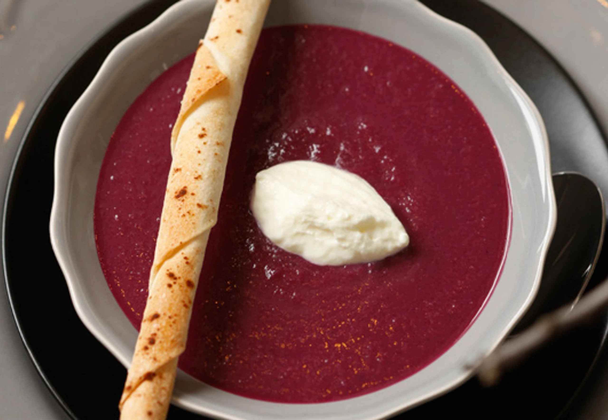 Obers cremig schlagen. Suppe aufkochen, mit Obers garnieren und mit den Stangerln servieren.