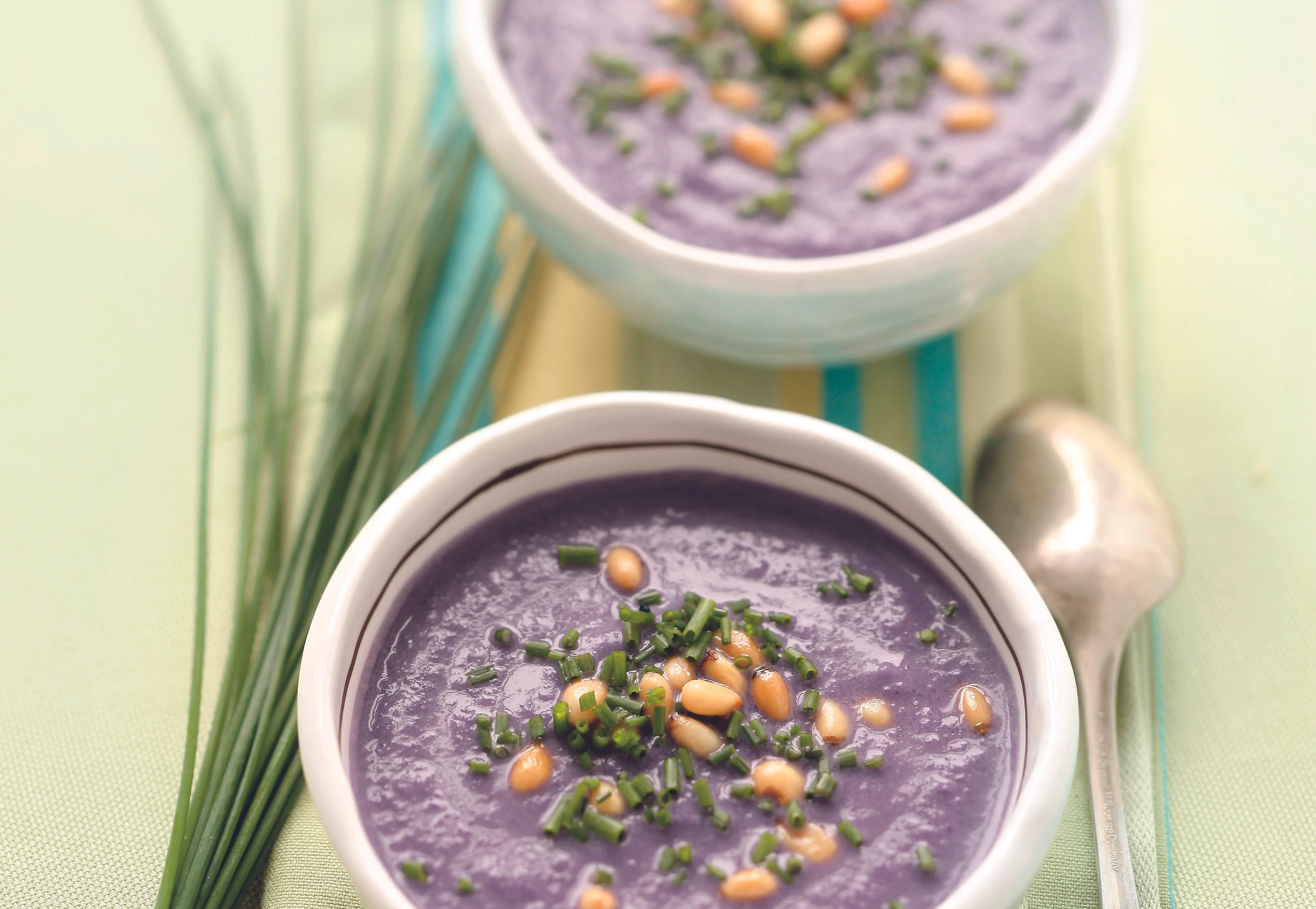 Rotkrautsuppe mit Pinienkernen