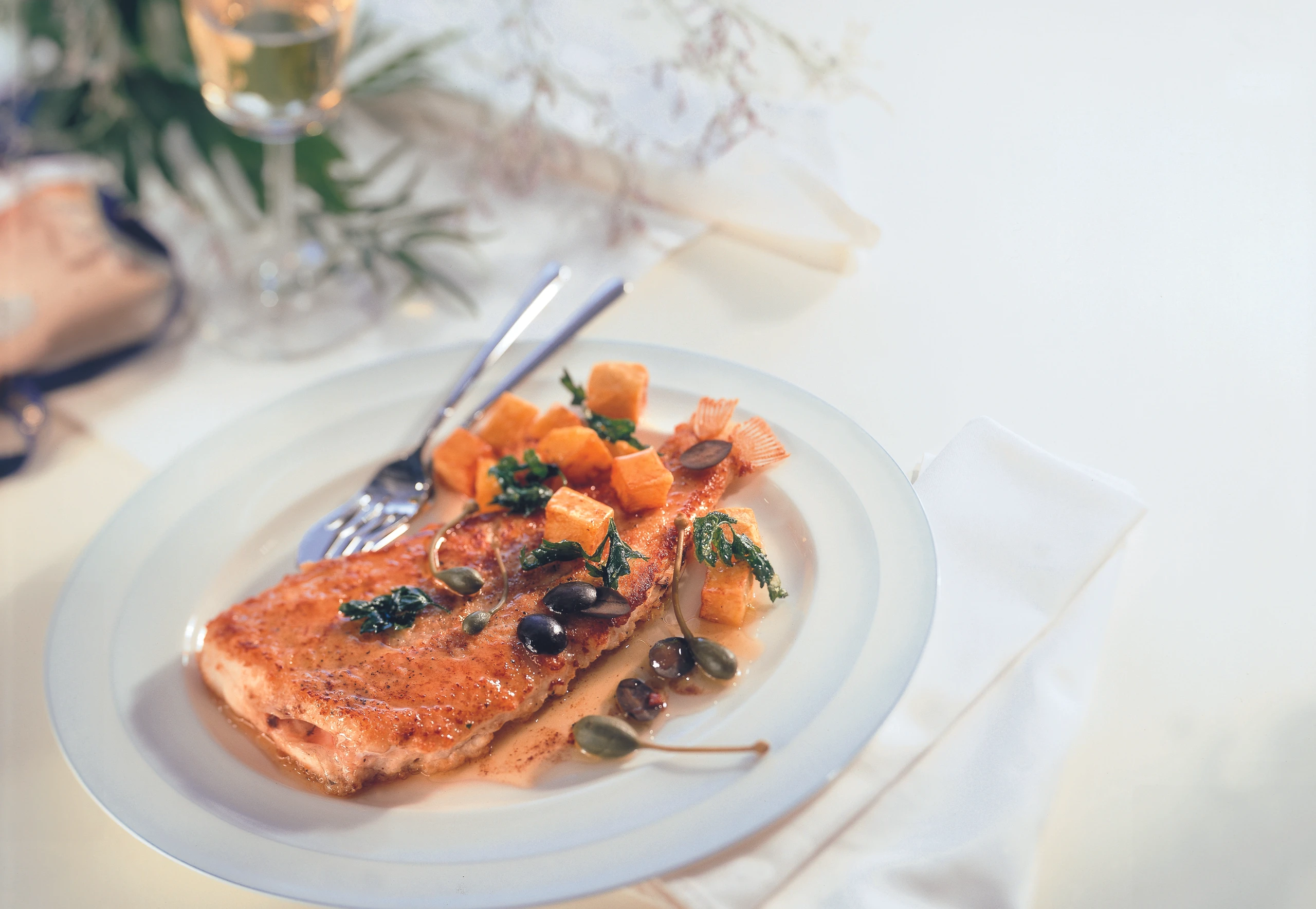 - In einer Pfanne 3 EL Olivenöl erhitzen. Rotzungen mit Salz, Pfeffer, Zitronensaft und zerdrücktem Knoblauch würzen und in der Mehl-Bröselmischung wenden, überschüssige Mischung vorsichtig abklopfen. Rotzungen ca. 5 Minuten im Öl bei mittlerer Hitze unter leichtem Schwenken braten. Fische wenden, kurz anbraten, auf das Backblech legen, mit der Hälfte der Butter belegen und mit Oliven und Kapernbeeren bestreuen. Fische im Rohr (mittlere Schiene) ca. 12 Minuten backen.