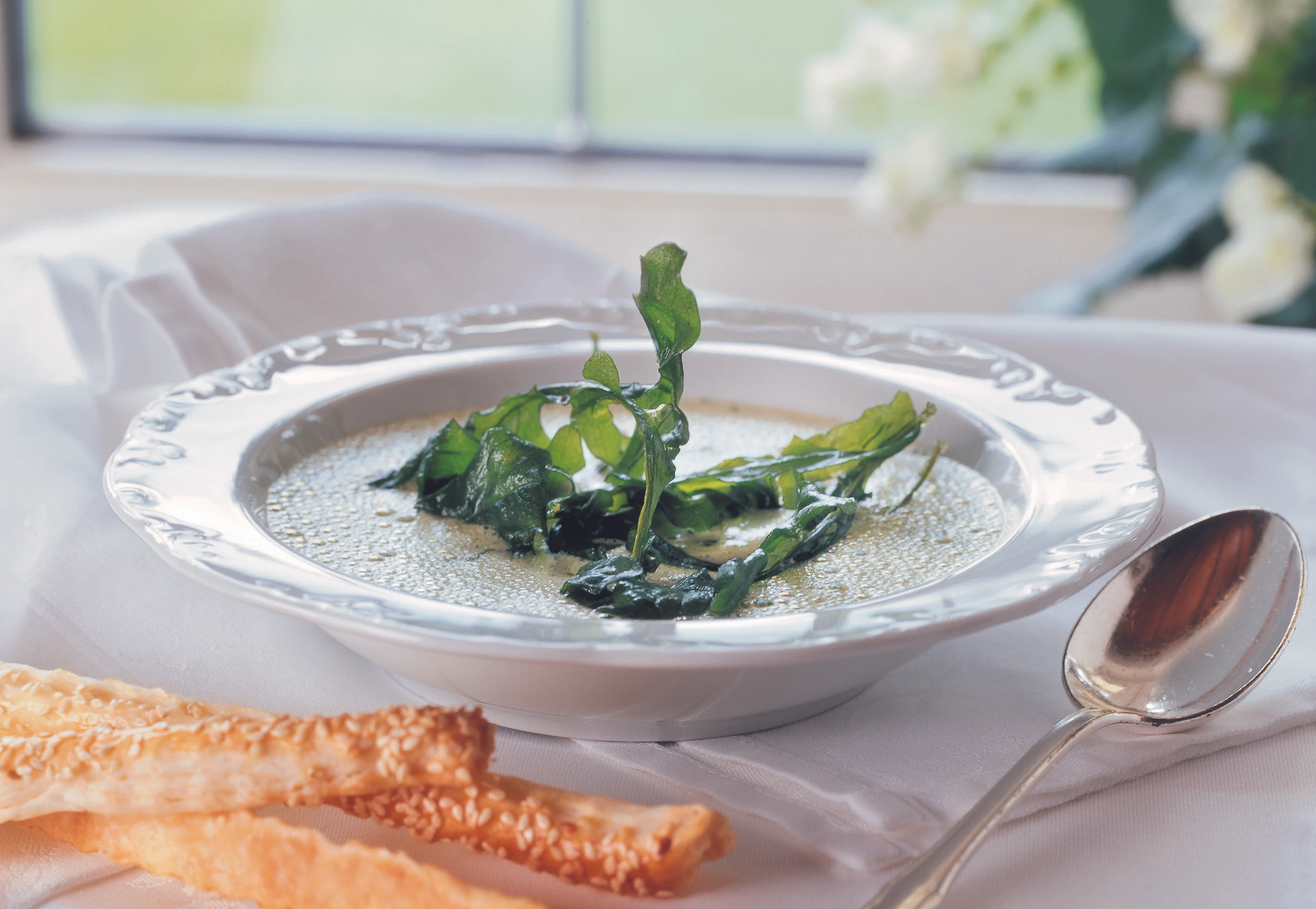 Gebackene Rucolablätter: Von 50 g Rucola eventuell die groben Stiele entfernen. Ca. 2 Finger hoch Öl erhitzen, Rucolablätter darin knusprig backen. Herausheben und auf Küchenpapier abtropfen lassen.Aus dem Heft: