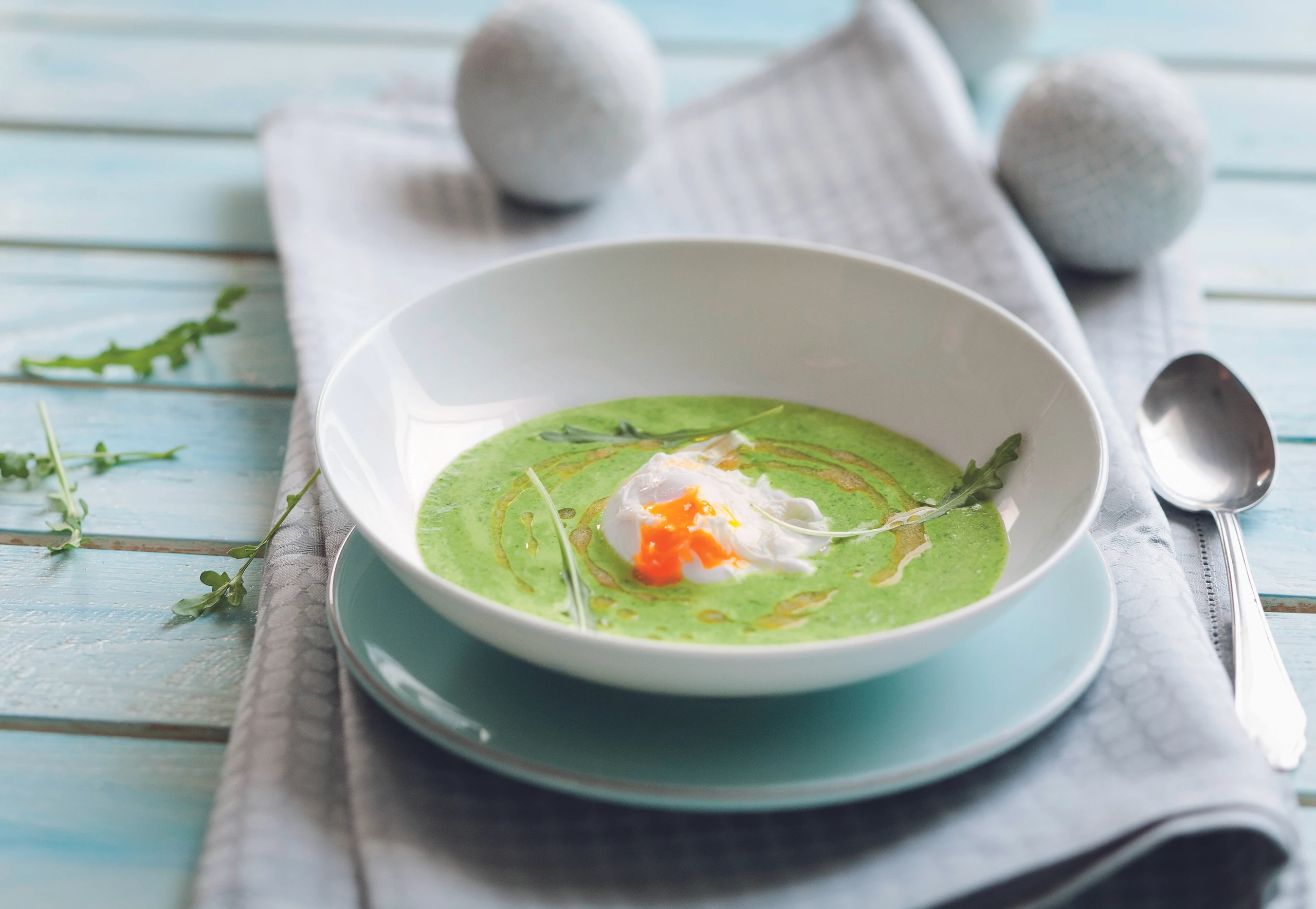 Rucolasuppe mit pochiertem Ei