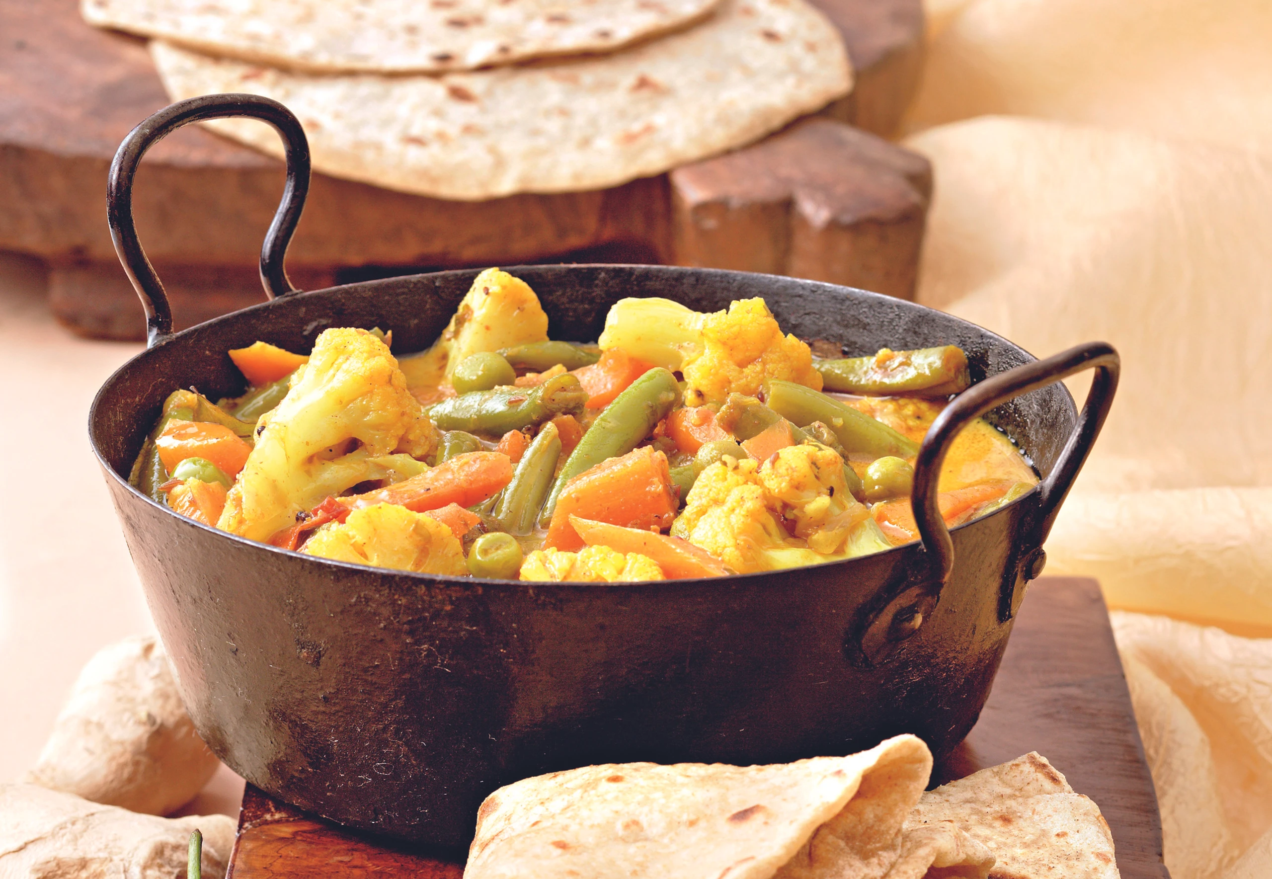 Sabzi mit Chapati: Indisches Gemüsecurry mit Fladenbrot