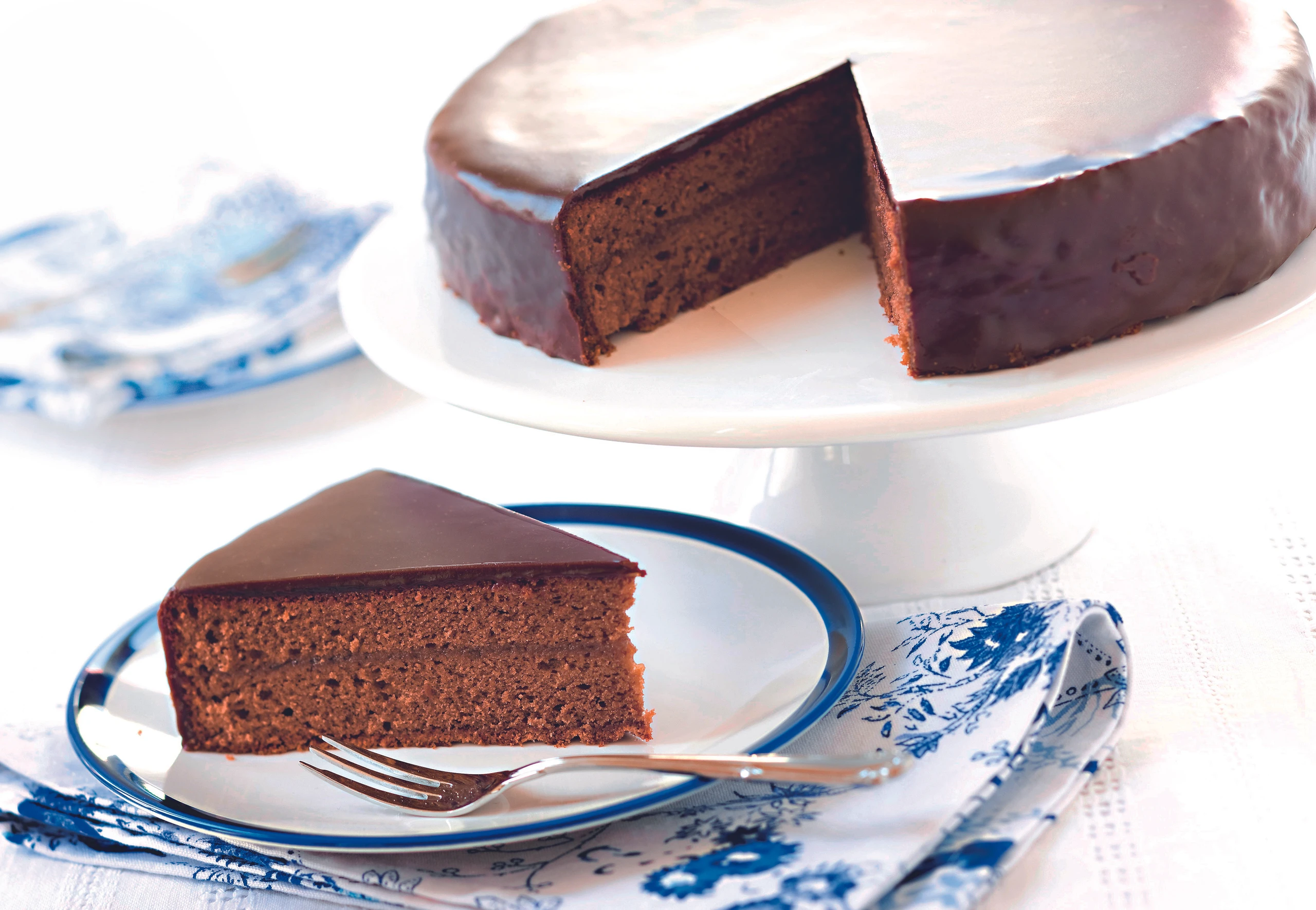 Torte aus der Form lösen und durchschneiden. Marmelade erwärmen und glatt rühren. Unteren Teigboden mit ca. 3 EL Marmelade bestreichen, zweiten Teigboden darauf setzen. Torte mit der übrigen Marmelade rundum einstreichen. Glasur über die Torte gießen und mit einer Palette verstreichen. Torte für ca. 3 Stunden kühl stellen.