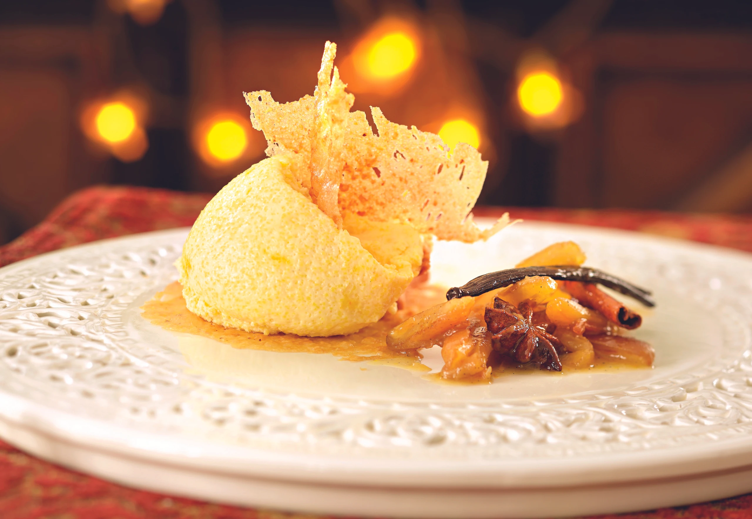Safran-Kardamom-Mousse mit marinierten Datteln
