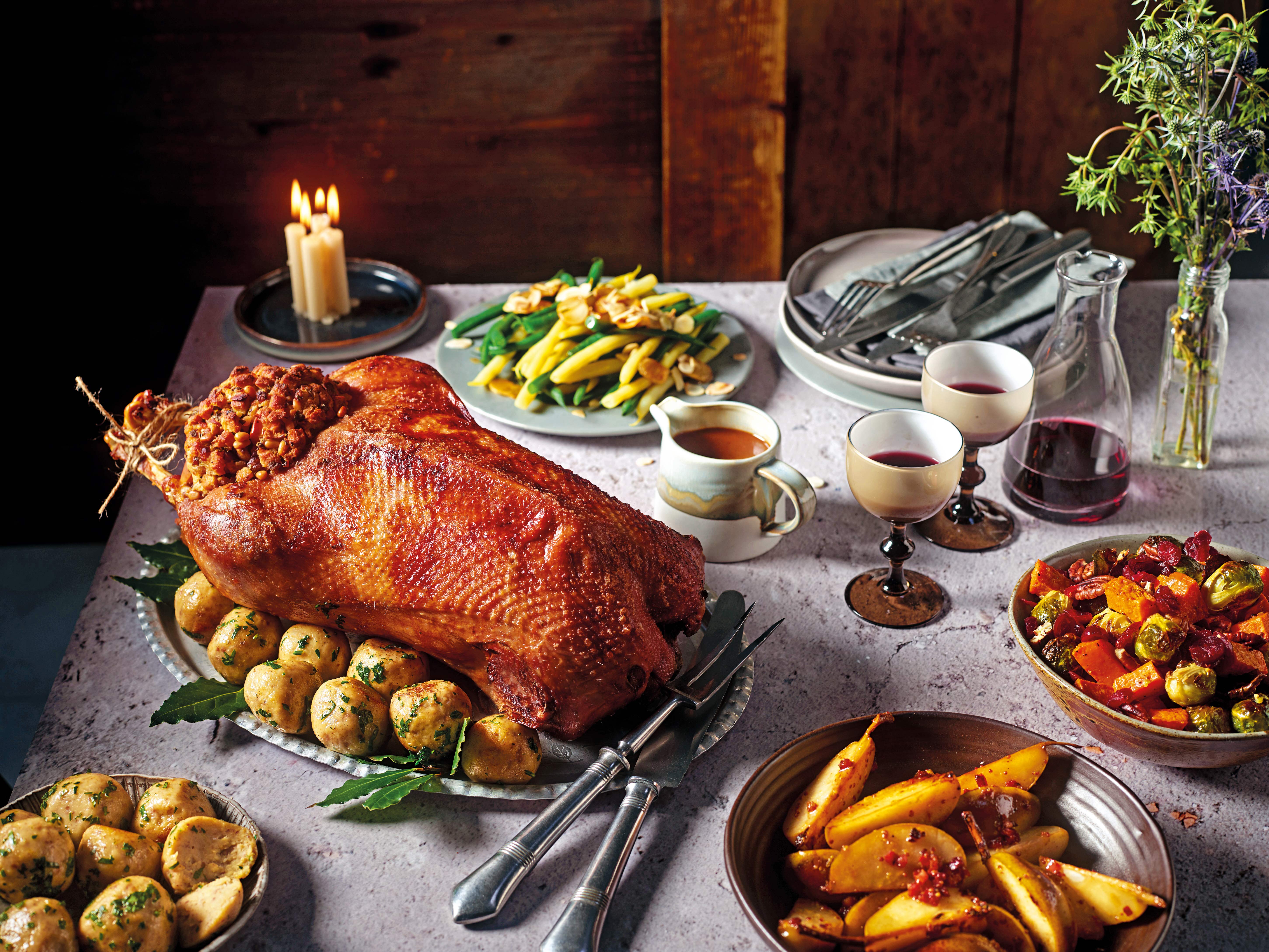 Saftiges Gansl mit Apfel-Speck-Maronifülle