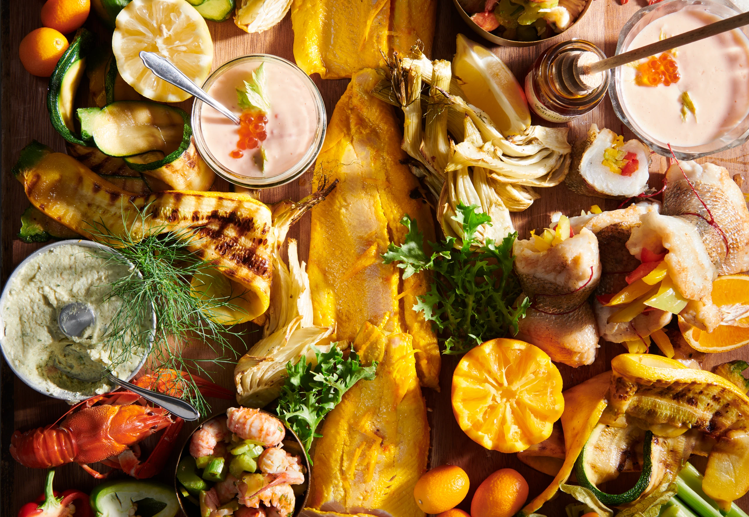 Zitrussäfte und -zesten, Safran und Honig verrühren. Fischfilets mit der Hautseite nach oben in die Marinade legen, mit Frischhaltefolie zudecken und für 8 Stunden kühl stellen.
