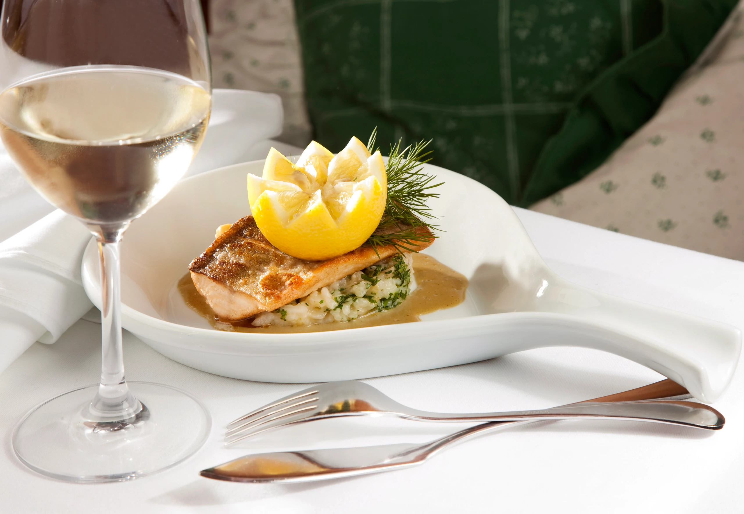 Saiblingsfilet auf Champignon-Risotto mit Kernöl-Sauce