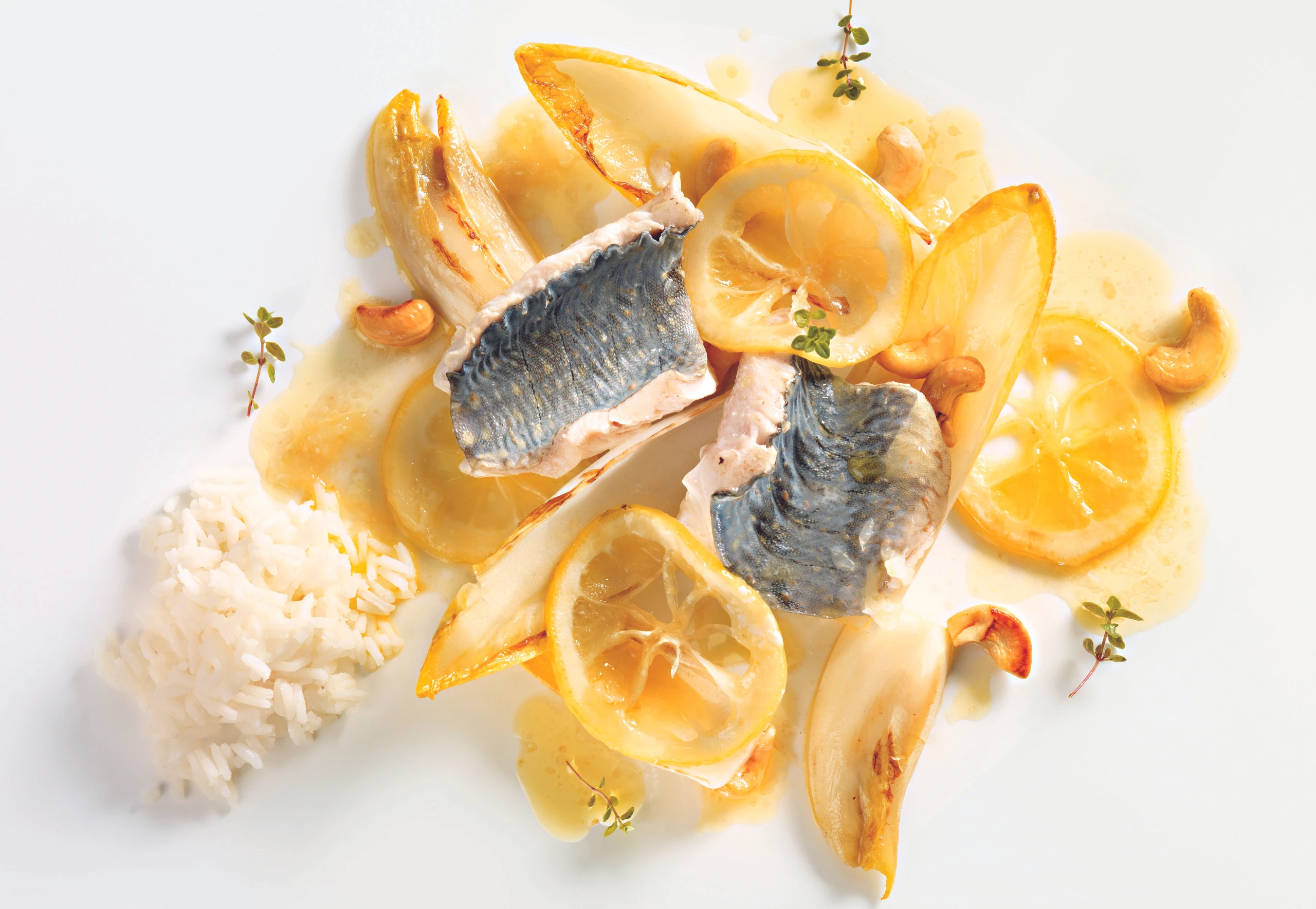 Vom Chicorée die Enden wegschneiden. Chicorée zerpflücken und in heißem Öl rundum anbraten. Nüsse untermischen und kurz mitbraten. Chicorée mit Salz und Pfeffer würzen. Saiblingsfilets mit Chicorée anrichten, mit Thymian bestreuen und mit Jasminreis servieren.