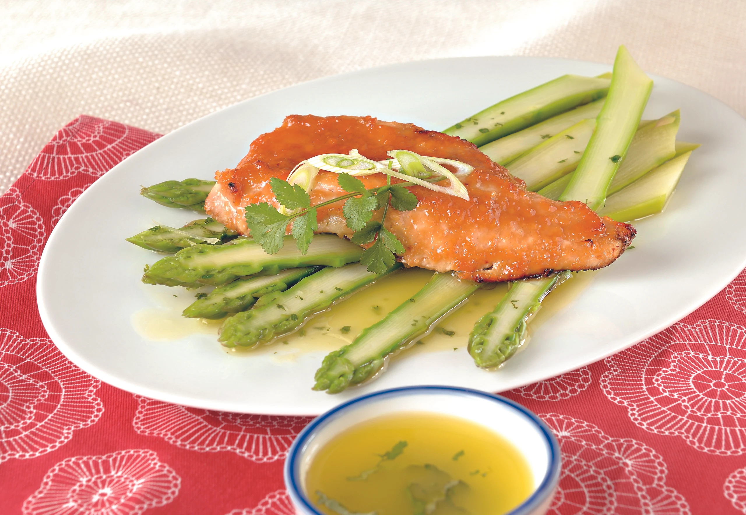 Saiblingsfilet mit Spargel und Miso-Marinade