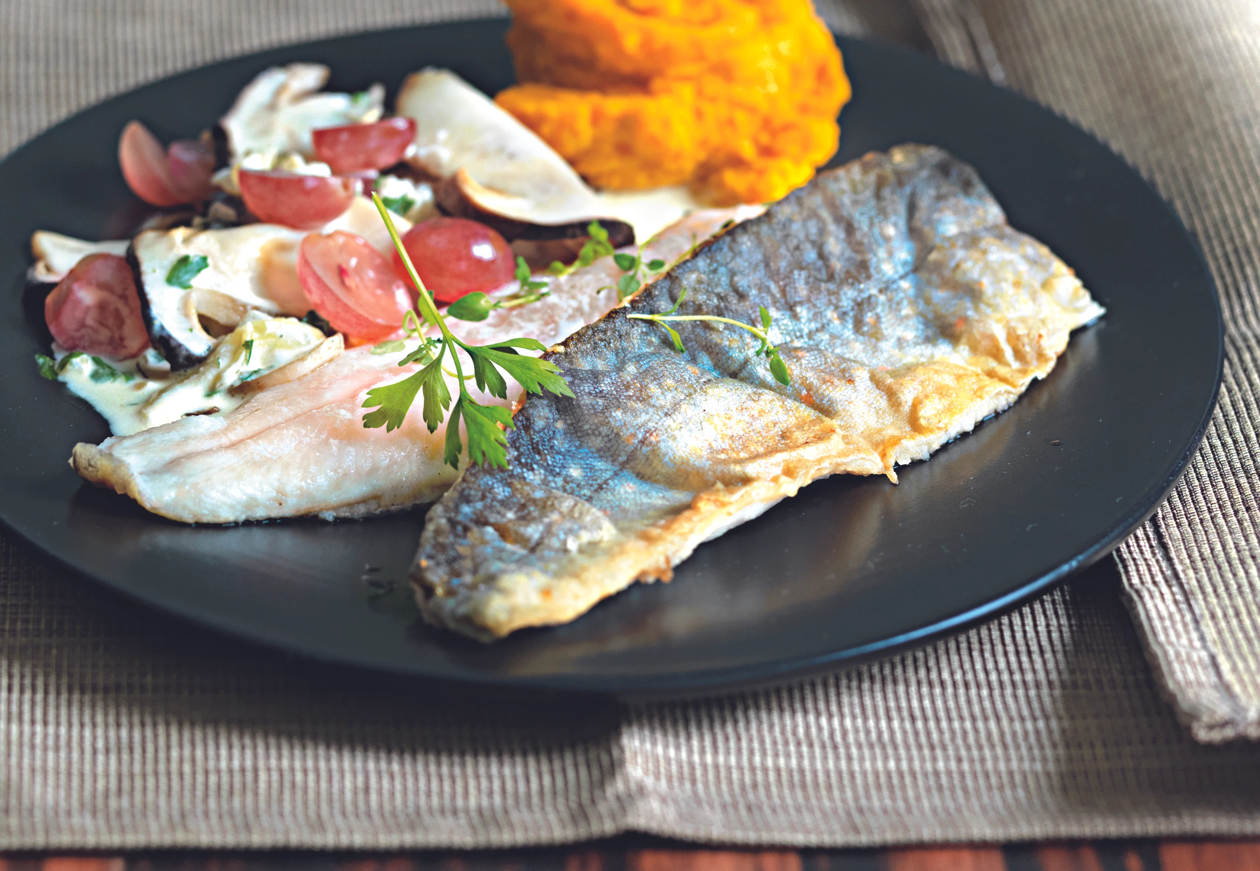 Saiblingsfilet mit Steinpilzsauce und Trauben