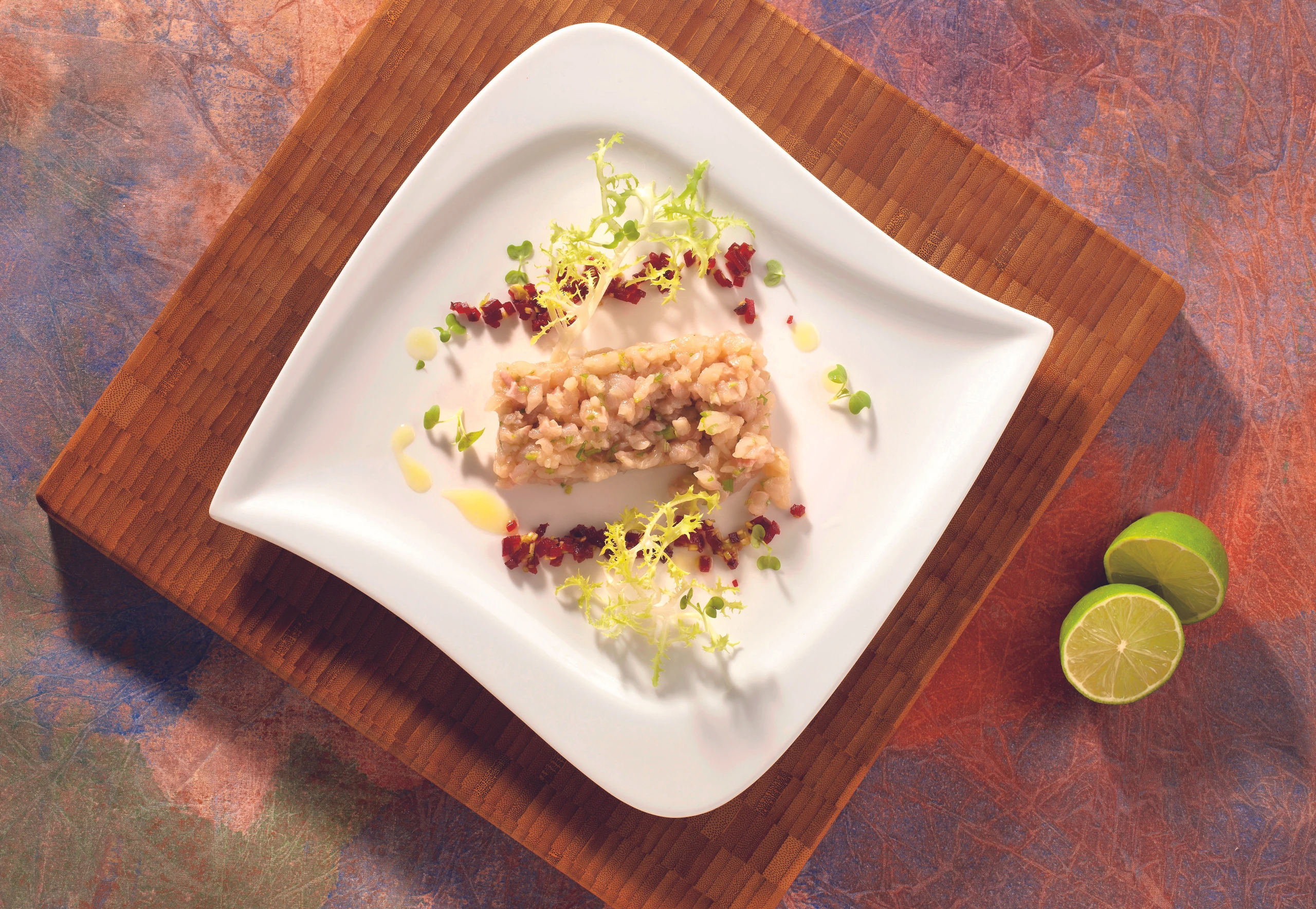 Saiblingsfilets nach eventuell noch vorhandenen Gräten abtasten und diese mit einer Pinzette entfernen. Filets klein schneiden. Jungzwiebel putzen, fein schneiden und mit den Fischstücken verrühren. Tatar mit Salz und Pfeffer würzen.