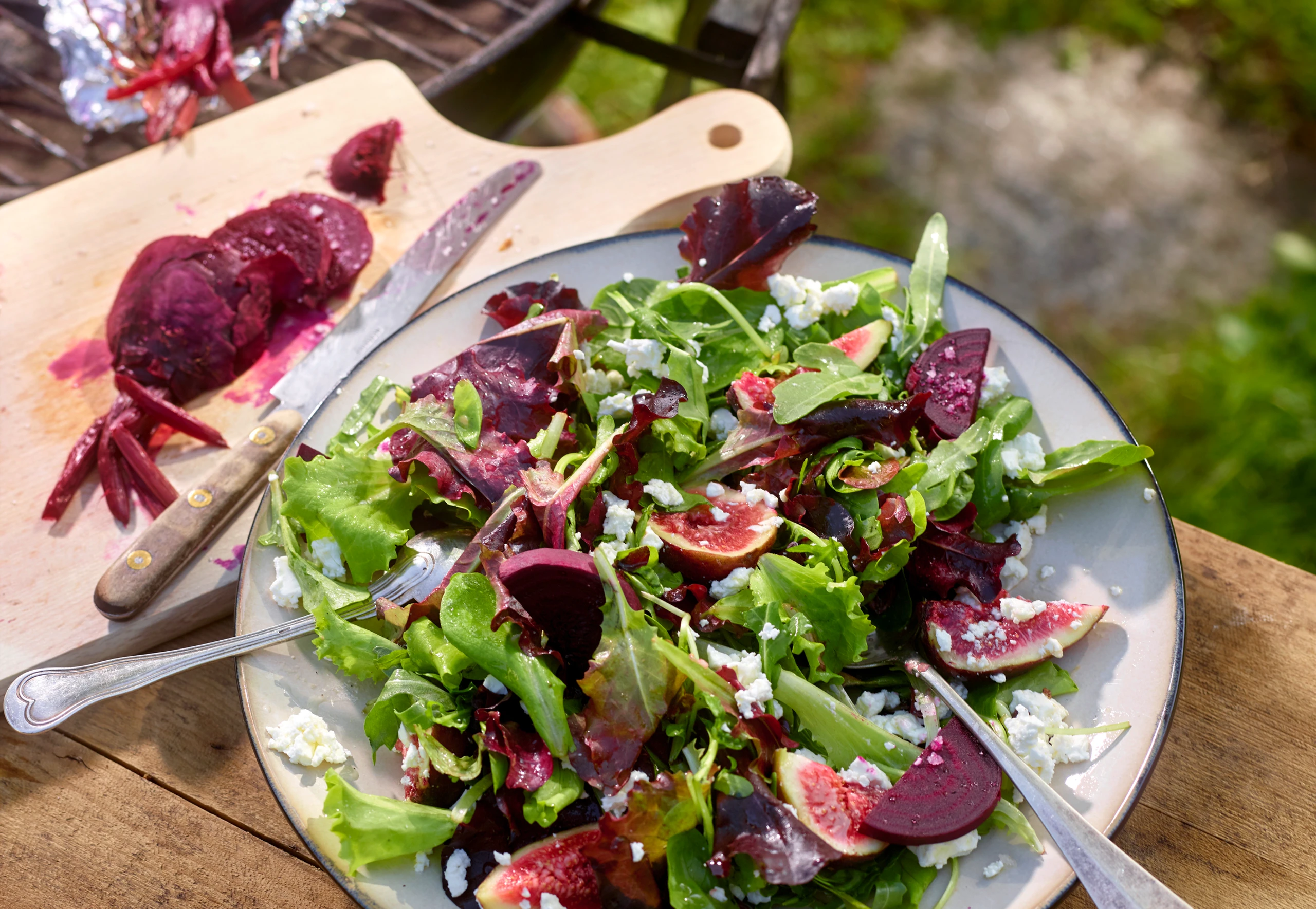 Salat mit Feigen, Feta & würzigen Roten Rüben