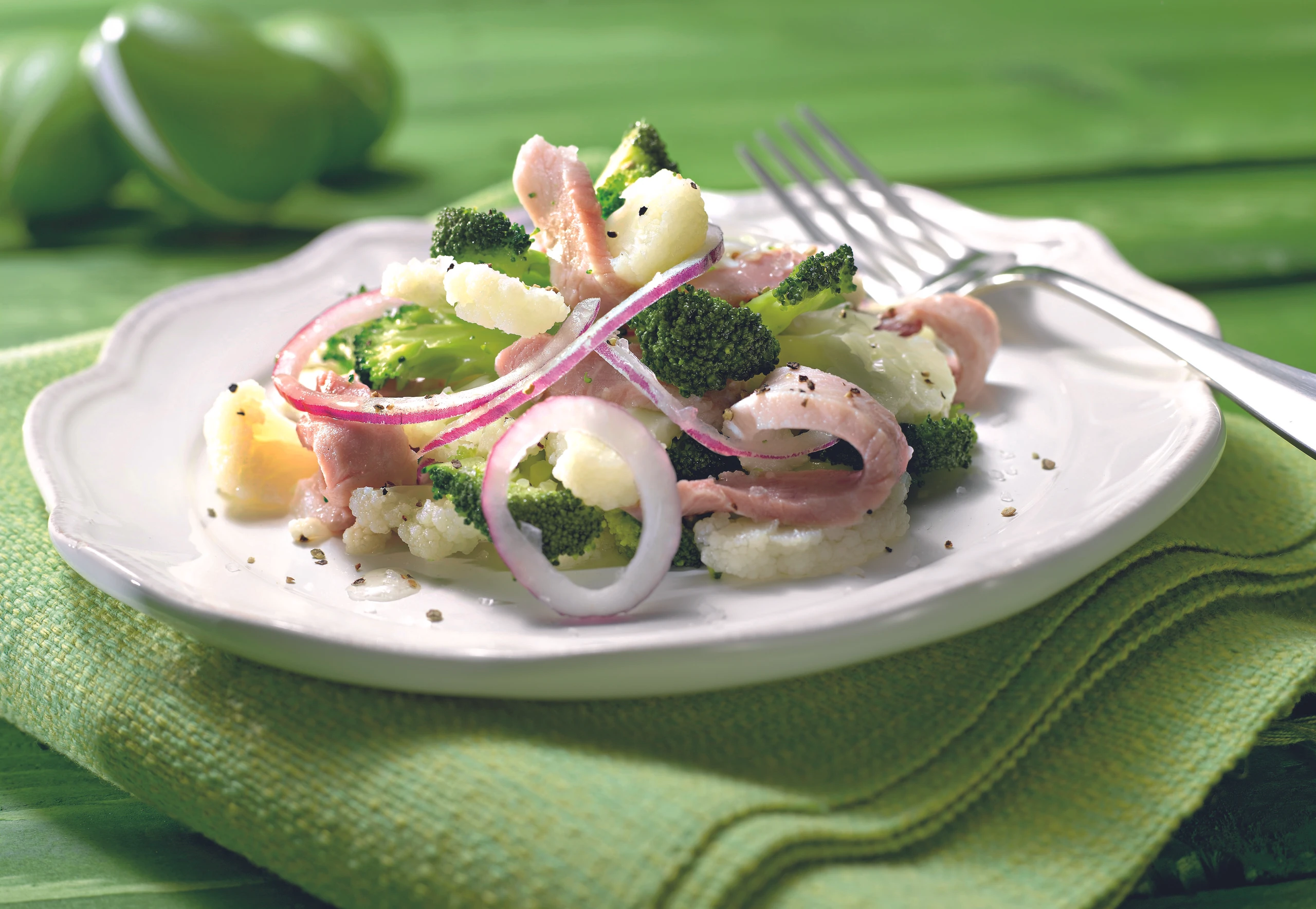 Salat von Schinken, Karfiol und Brokkoli