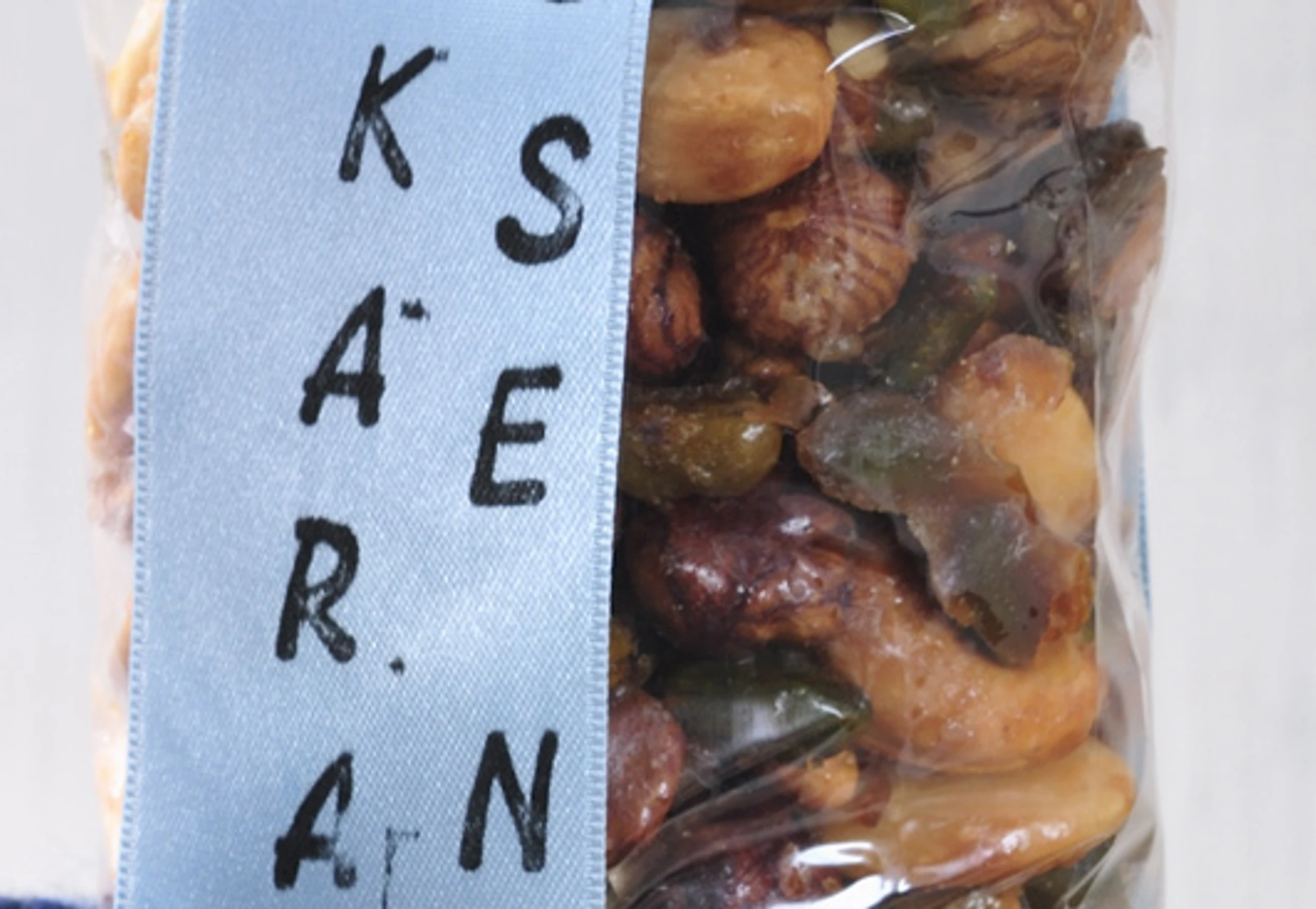 - Salz-Karamell-Nüsse in Säckchen füllen, Säckchen verschließen.