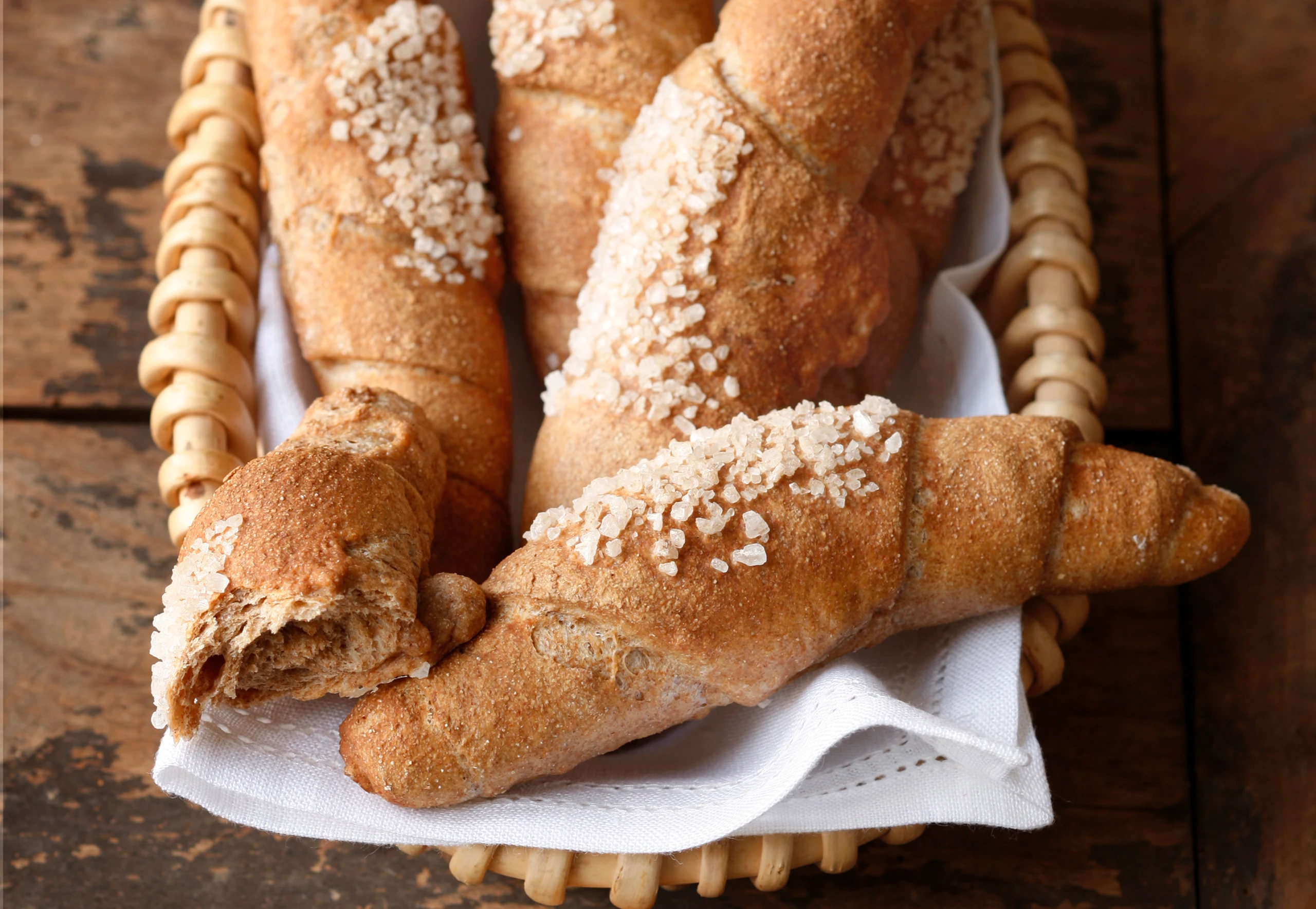 Stangerl mit Wasser besprühen, in Salz drücken und auf das Blech legen. 30-45 Minuten aufgehen lassen, nochmals mit Wasser besprühen und nacheinander im Rohr (mittlere Schiene) goldbraun backen (ca. 25 Minuten).
