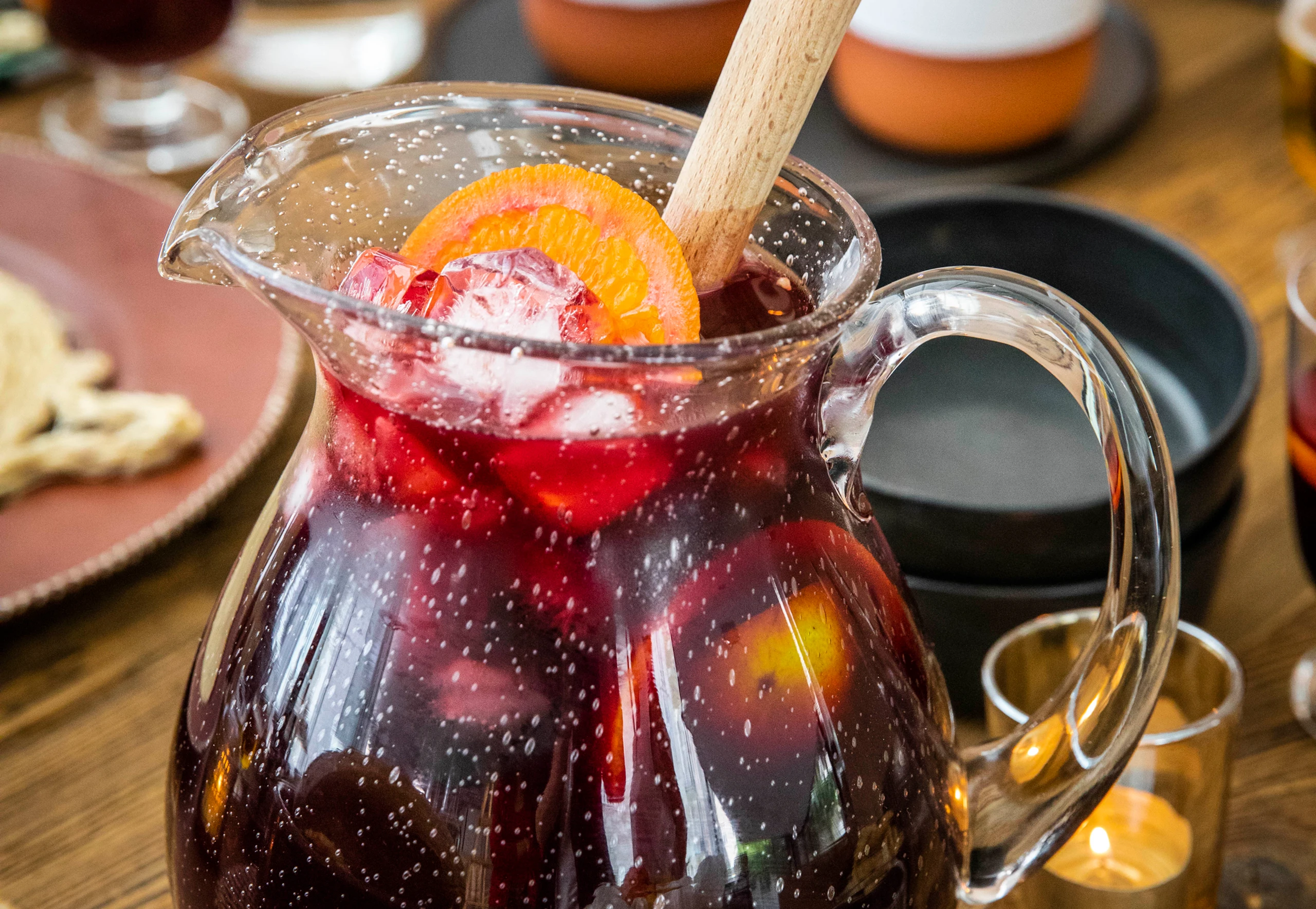 Alle Zutaten im Krug vermischen. Sangria für mind. 30 Minuten kalt stellen.
