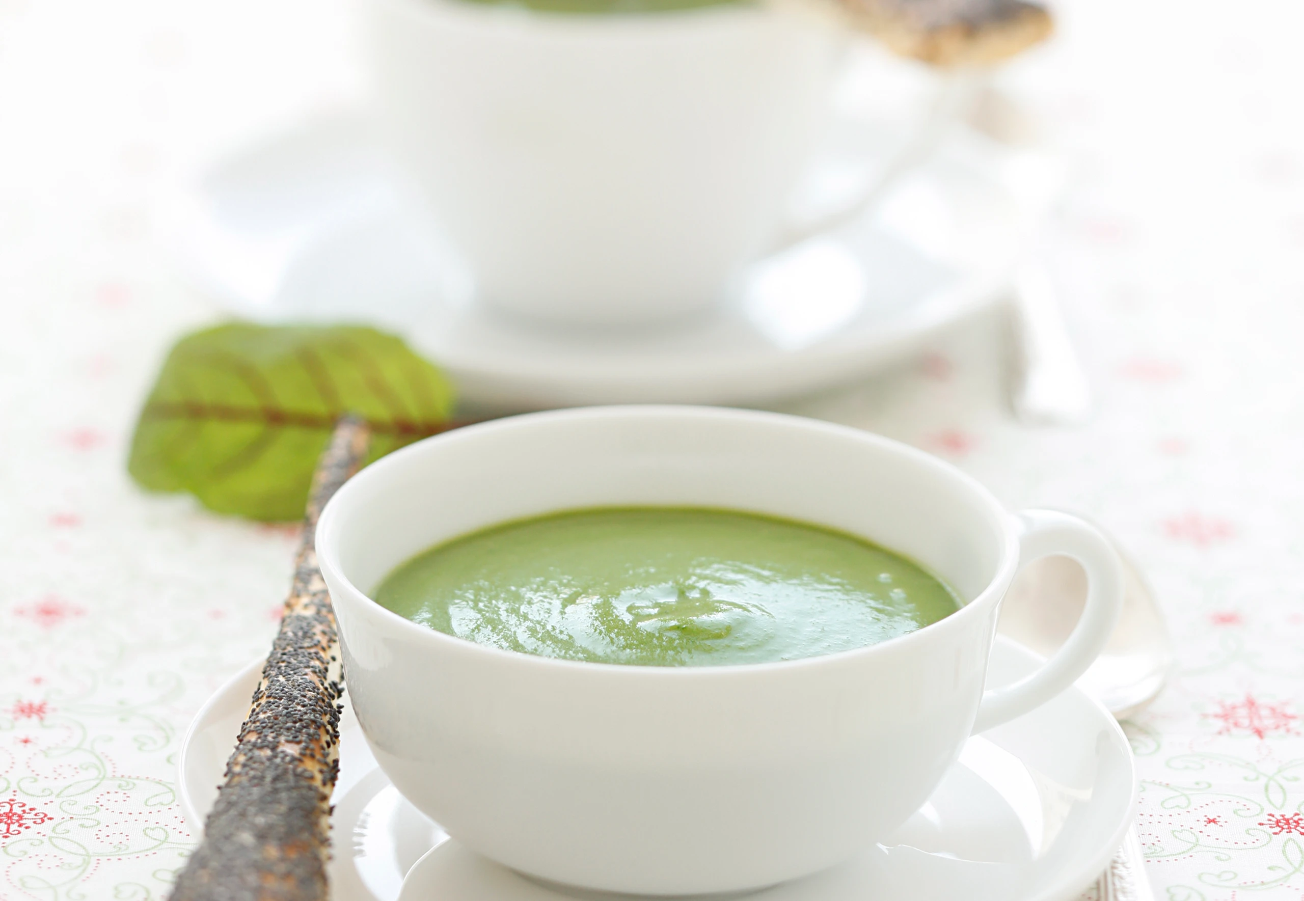 - Sauerampferblätter von den Stielen zupfen und am Ende der Garzeit in die Suppe rühren. Suppe mit einem Stabmixer fein pürieren und mit Salz, Pfeffer und einigen Tropfen Zitronensaft würzen. Suppe anrichten und mit Mohnstangerln garniert servieren.