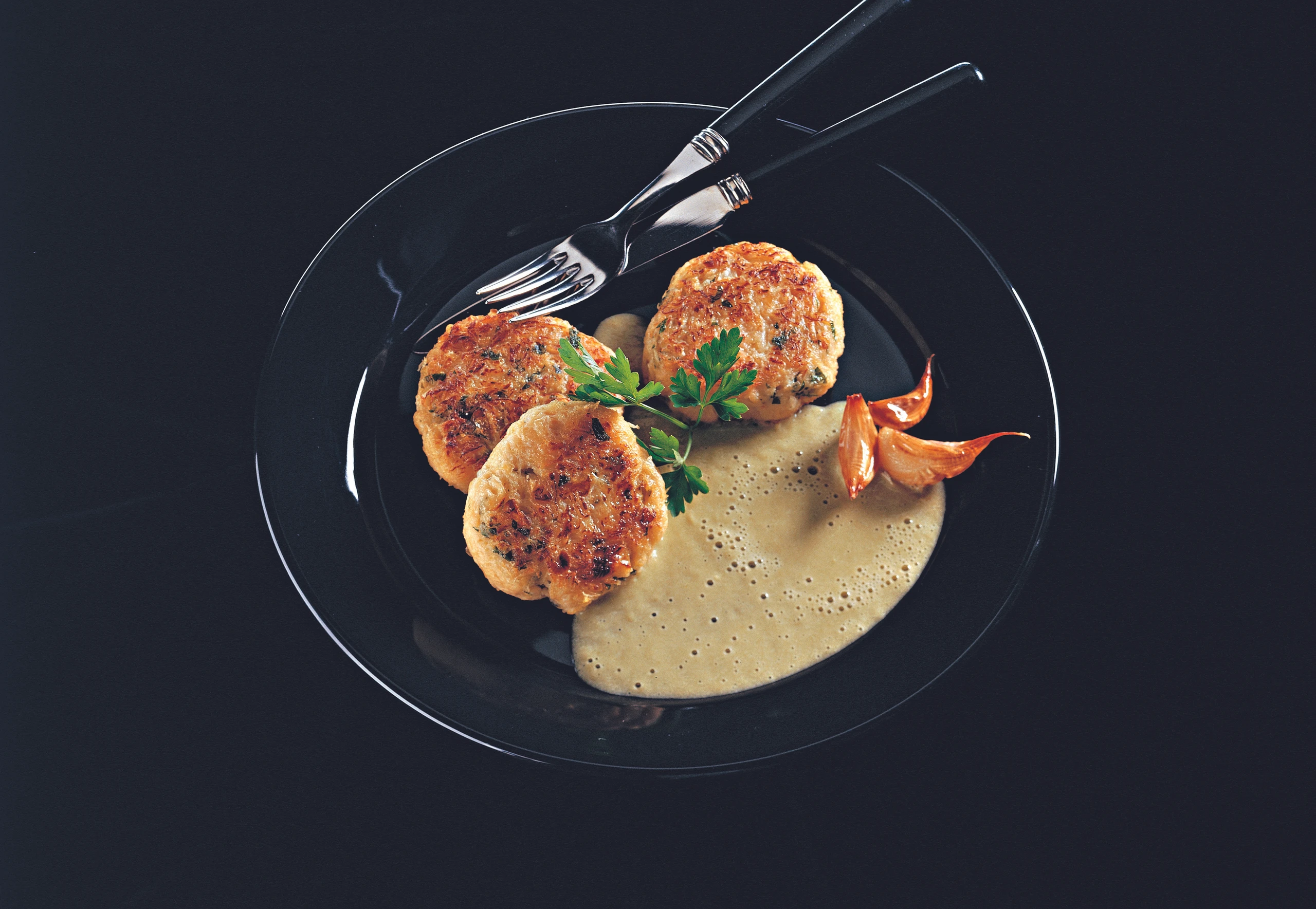 Sauerkraut-Laibchen mit grüner Paprikasauce
