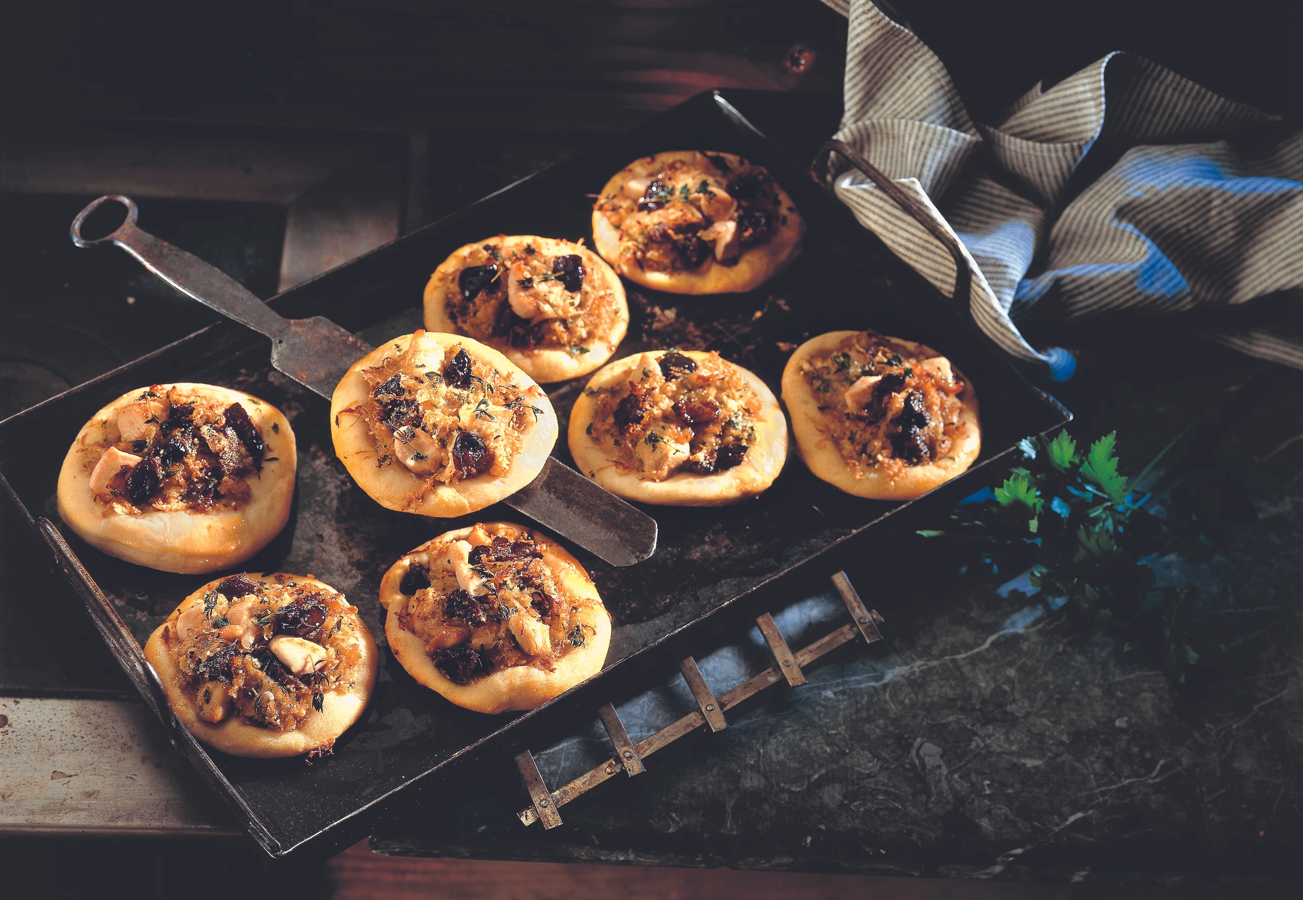 - Teigscheiben auf das Backblech legen, mit Krautmasse belegen. Rand mit verquirltem Ei bestreichen. Krapferln im Rohr (mittlere Schiene) ca. 25 Minuten backen.