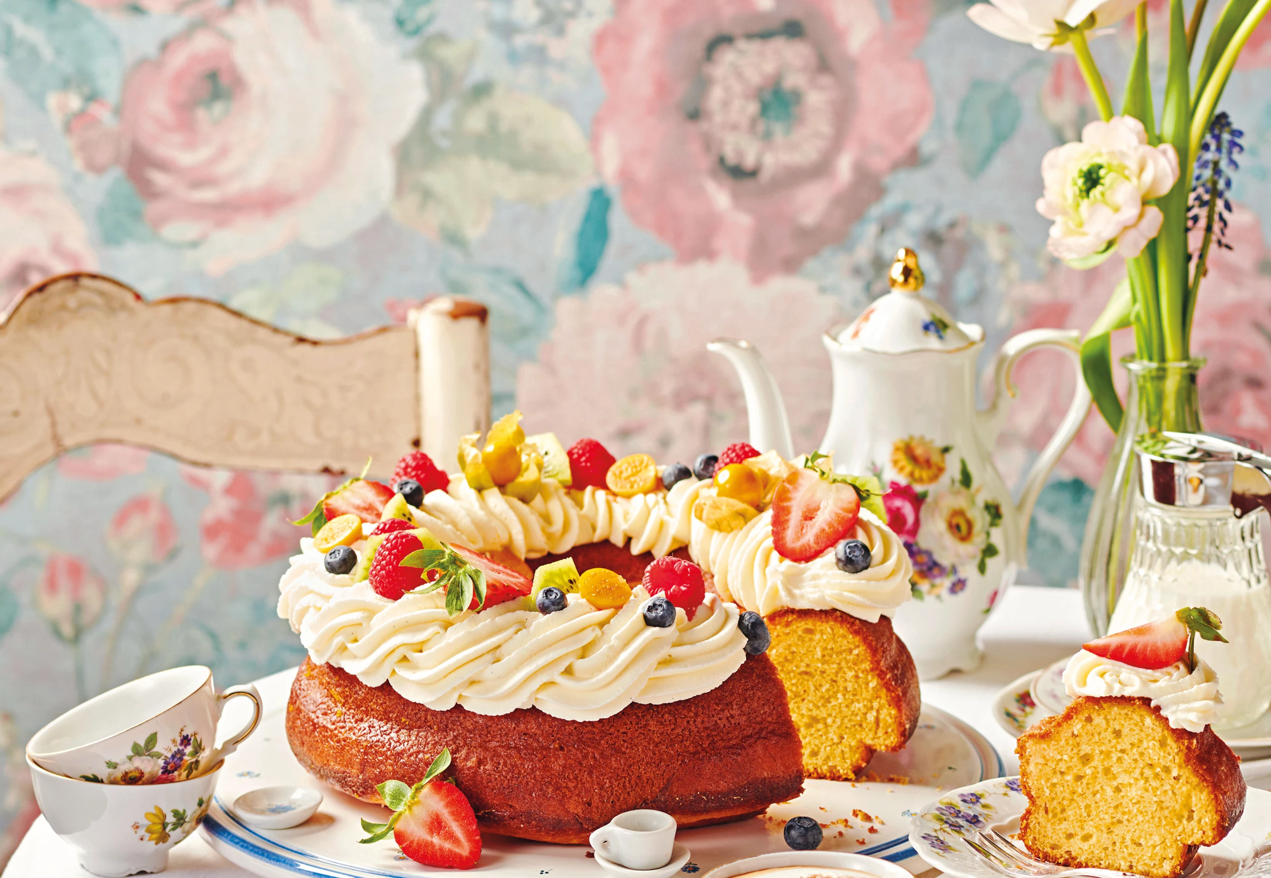 Rohr auf 170 °C Umluft vorheizen. Savarin im Rohr (mittlere Schiene, Gitterrost) ca. 30 Minuten backen. Herausnehmen und kurz überkühlen lassen. Savarin aus der Form stürzen.