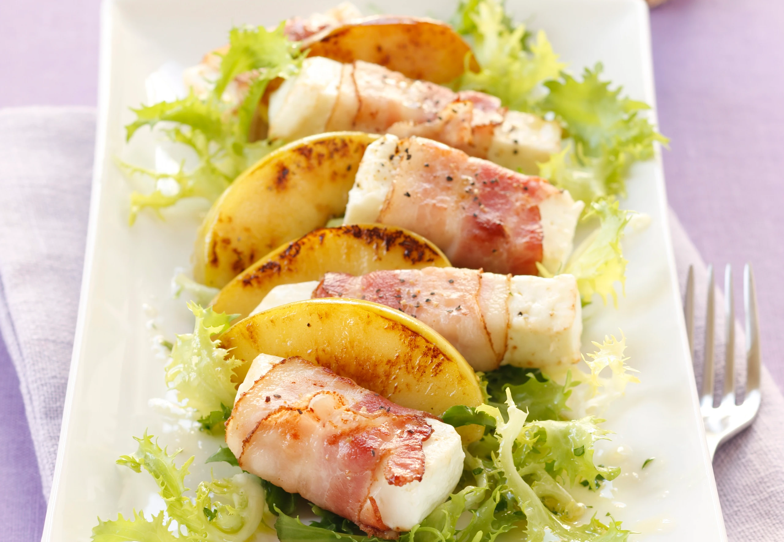 Schafkäse im Speckmantel mit Friséesalat