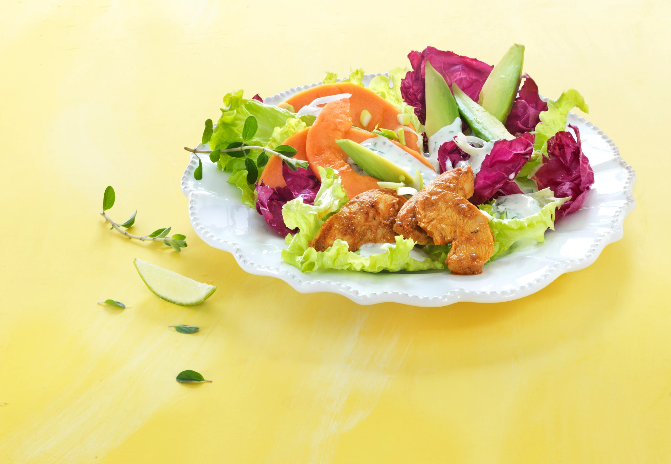 Scharfer Hühnersalat mit Limetten-Kräuter-Dressing