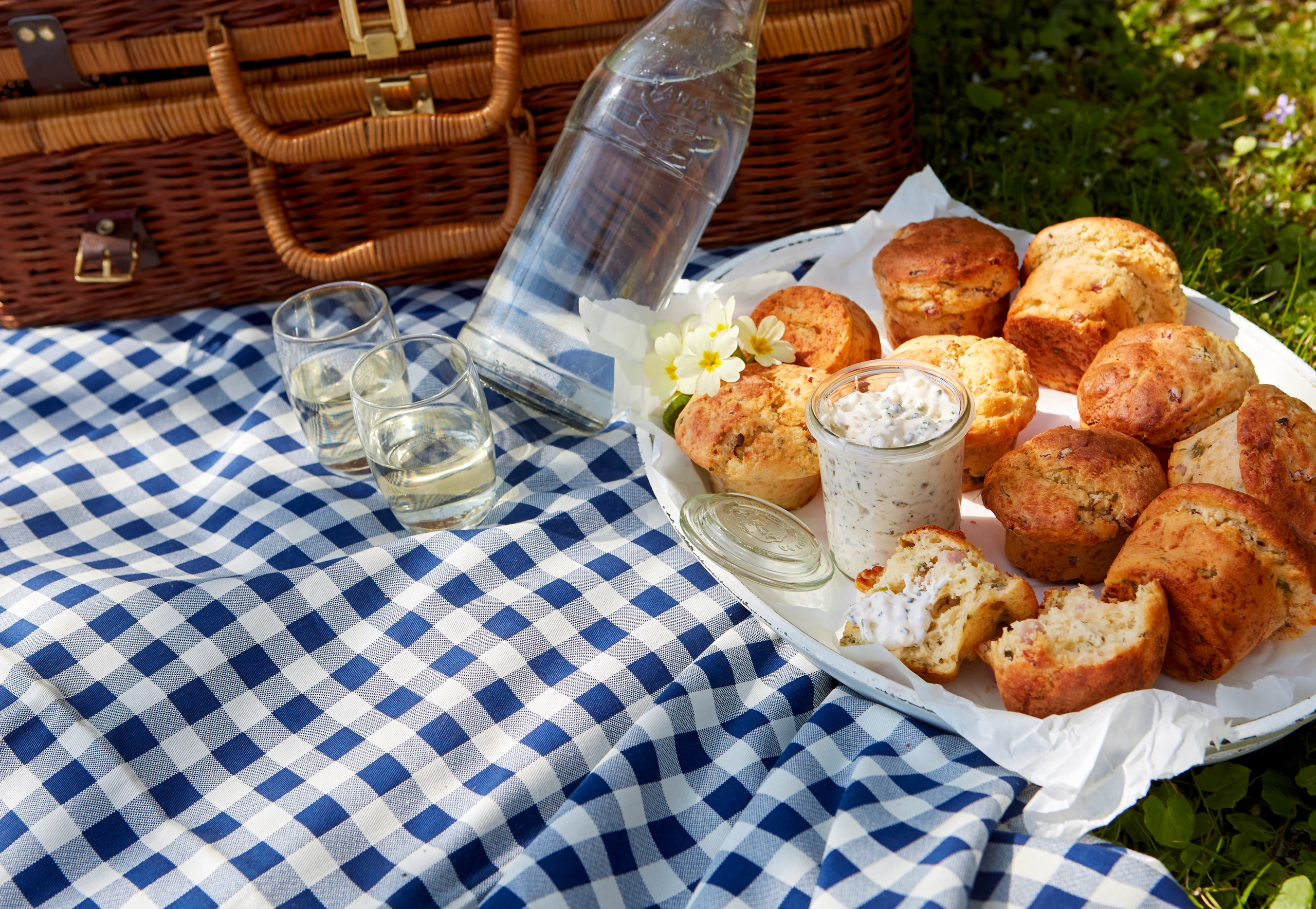 Für die Sauce Gurkerl und Zwiebeln klein würfeln. Rahm mit Mayonnaise, Senf, wenig Salz und Pfeffer glatt rühren. Gurkerl, Zwiebeln und Petersilie untermischen. Muffiins aus den Förmchen lösen und mit der Sauce anrichten.