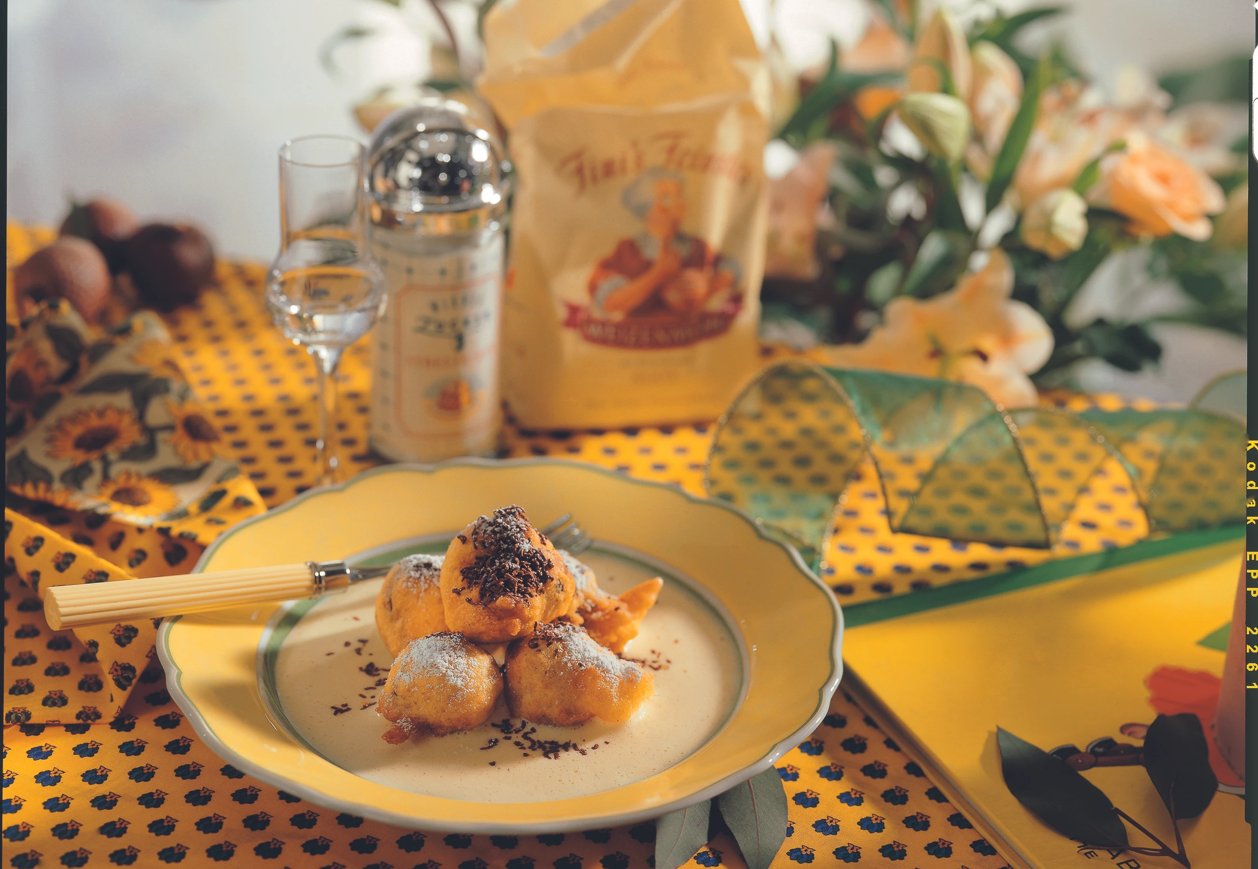 Bevor man mit der Zubereitung der Schlosserbuben beginnt, Wein mit der Vanilleschote aufkochen. Während der Backteig rastet, verrührt man den ausgekühlten Wein mit Eiern, Dotter und Zucker und stellt Wasser für das „Dampfbad“ zu. Während die fertigen Schlosserbuben abtropfen, schlägt man das Sabayon schaumig auf.