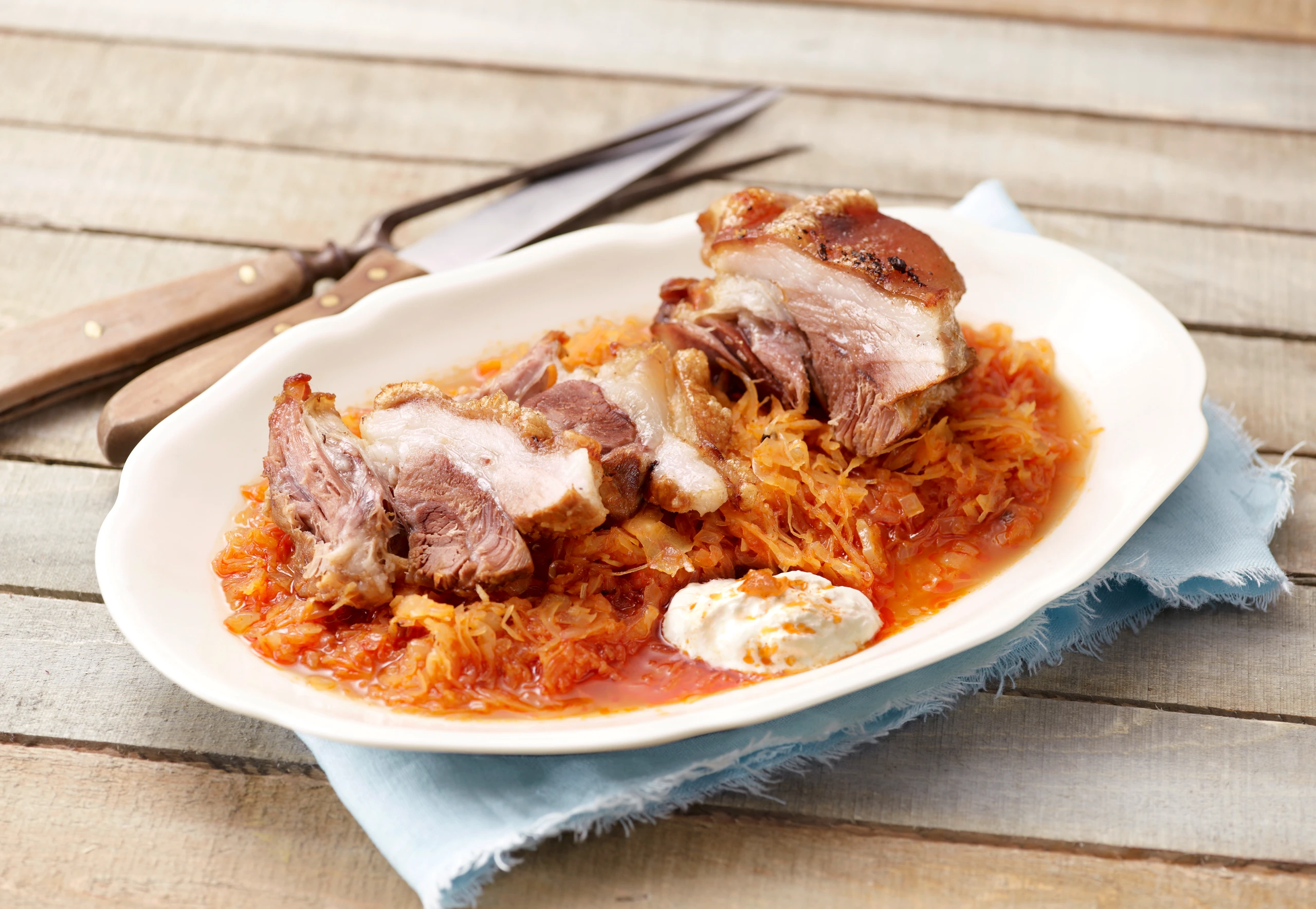 Schmorstelze auf Sauerkraut