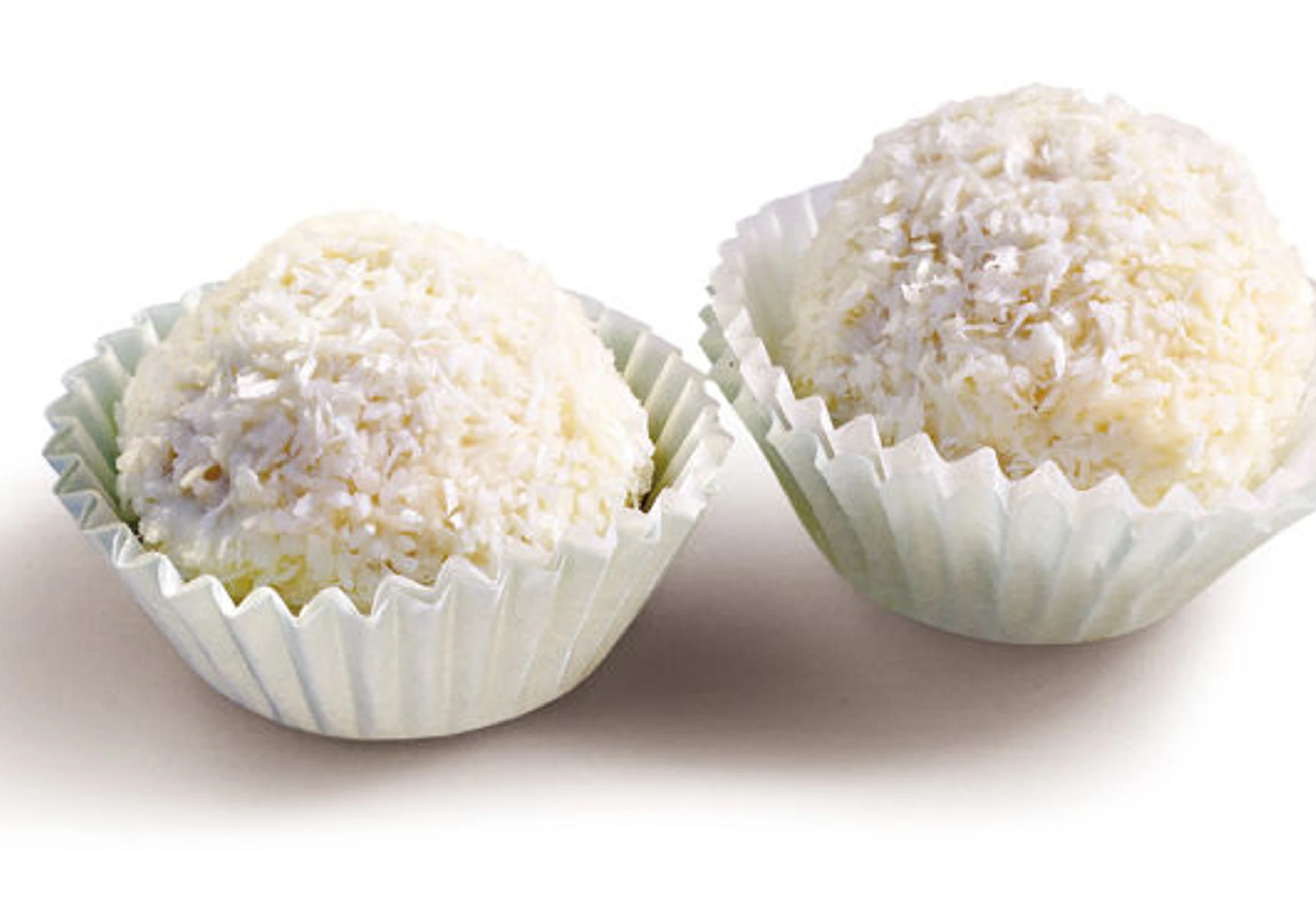 Kuvertüre hacken und über Dampf schmelzen. Mandelkugeln in die Kuvertüre tauchen, abtropfen lassen und in Kokosette wälzen. Kugeln auf ein Stück Backpapier legen und für ca. 30 Minuten kühl stellen. In Pralinenkapseln setzen.