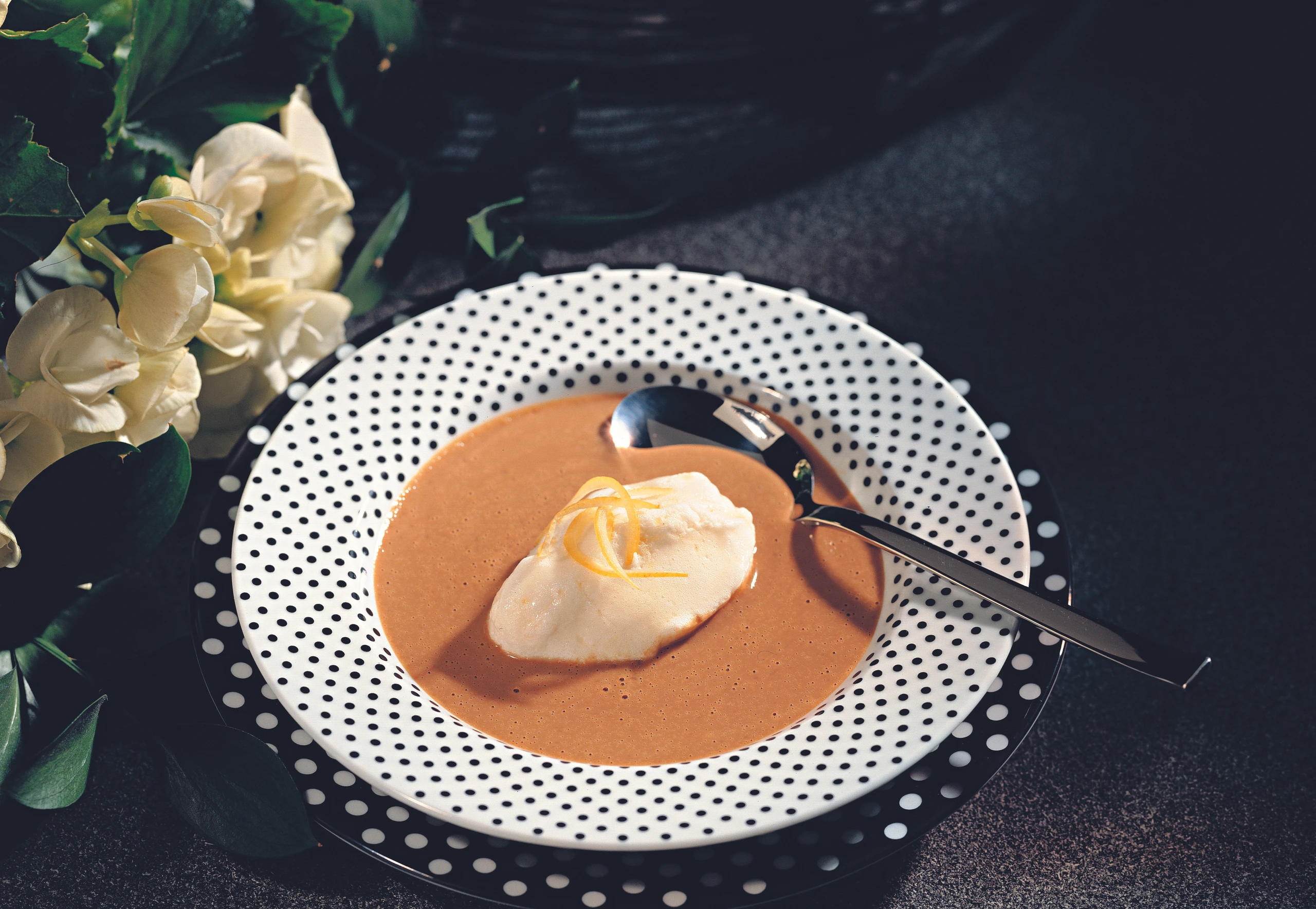 Nockerl mit einem Siebschöpfer aus der Milch heben, abtropfen lassen und mit der Mokka-Sauce und den Zitronen-Streifen anrichten.